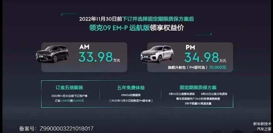 加上2000元抵10000元的订金膨胀,选择不同的质保方案,09 EM-P最低的入手价格可以做到33.98万元和34.98万元。这个价格实际上已经比理想L8 PRO还要低,所以准车主群里一下子爆炸了。