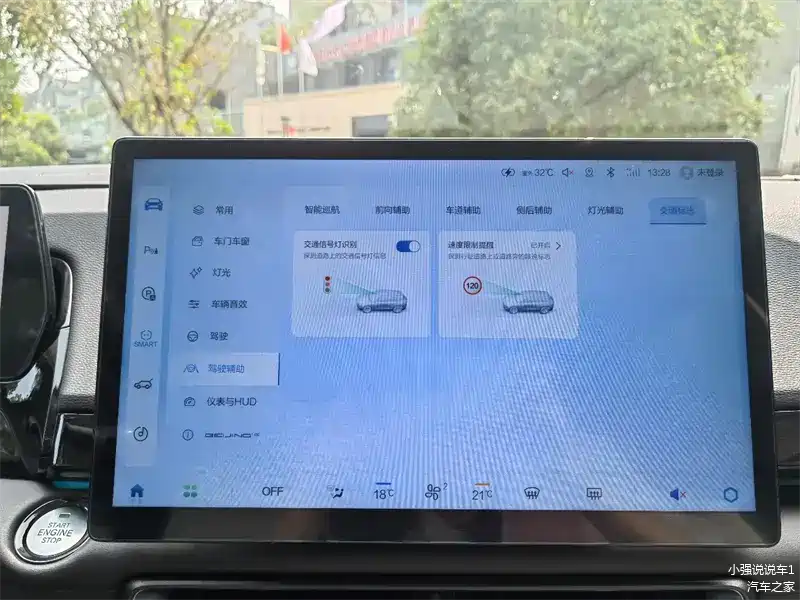 跟一般的抬头显示有所不同,北汽魔方搭载的AR-HUD系统要“先进“许多,采用了跟奔驰S级相同的AR-HUD技术,可以清晰的显示常规仪表信息、导航信息、智能驾驶辅助警示信息、路障识别警示等,开车无需低头,平视即可查看基本行车信息,值得注意的是,当你转弯的时候,前挡风玻璃上就会投射相应的指引路线,很像打赛车游戏的辅助走线一样,开起来很带感。