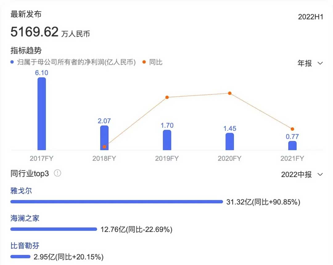 和黑芝麻类似,红豆股份自2018年起,利润逐渐下滑。