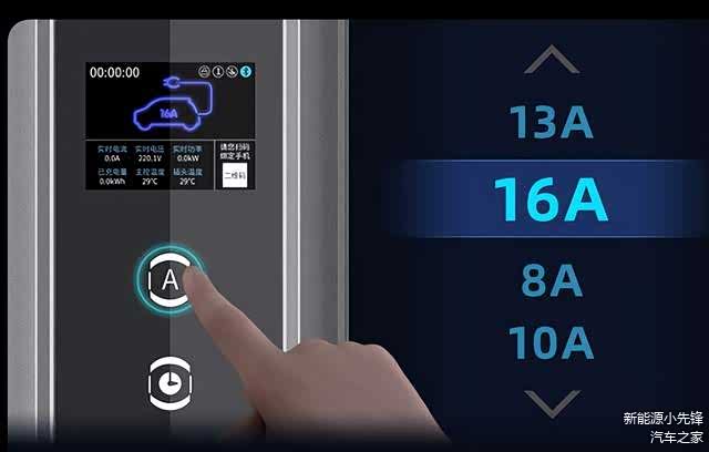 另外,普诺得随车充还支持8-16A的四档电流调节,将电流调至10A及以下,换上普诺得随车充赠送的16A转10A的接头,就可以直接插在我们常见的10A的三孔插座上给小蚂蚁充电,非常的方便。