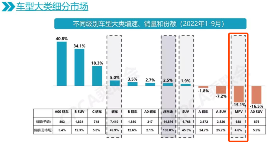 乘联会秘书长崔东树表示:“随着人口老龄化问题以及独生子女政策退出后,家庭结构发生变化,由过去的三口之家变成多口之家,在这一趋势下,形成了众多车企布局高端MPV市场的趋势,高端MPV市场在众多自主品牌的入局下可以保持一个较好的增长。”