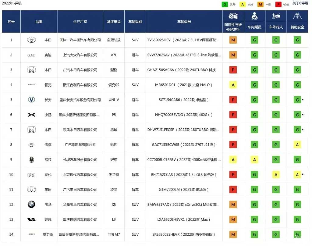 实际上,在此次参与碰撞的14款车型里,具体的评价项目中没有清一色拿到“G”的自主品牌并不在少数,比如影豹、小鹏P5、长安UNI-V。