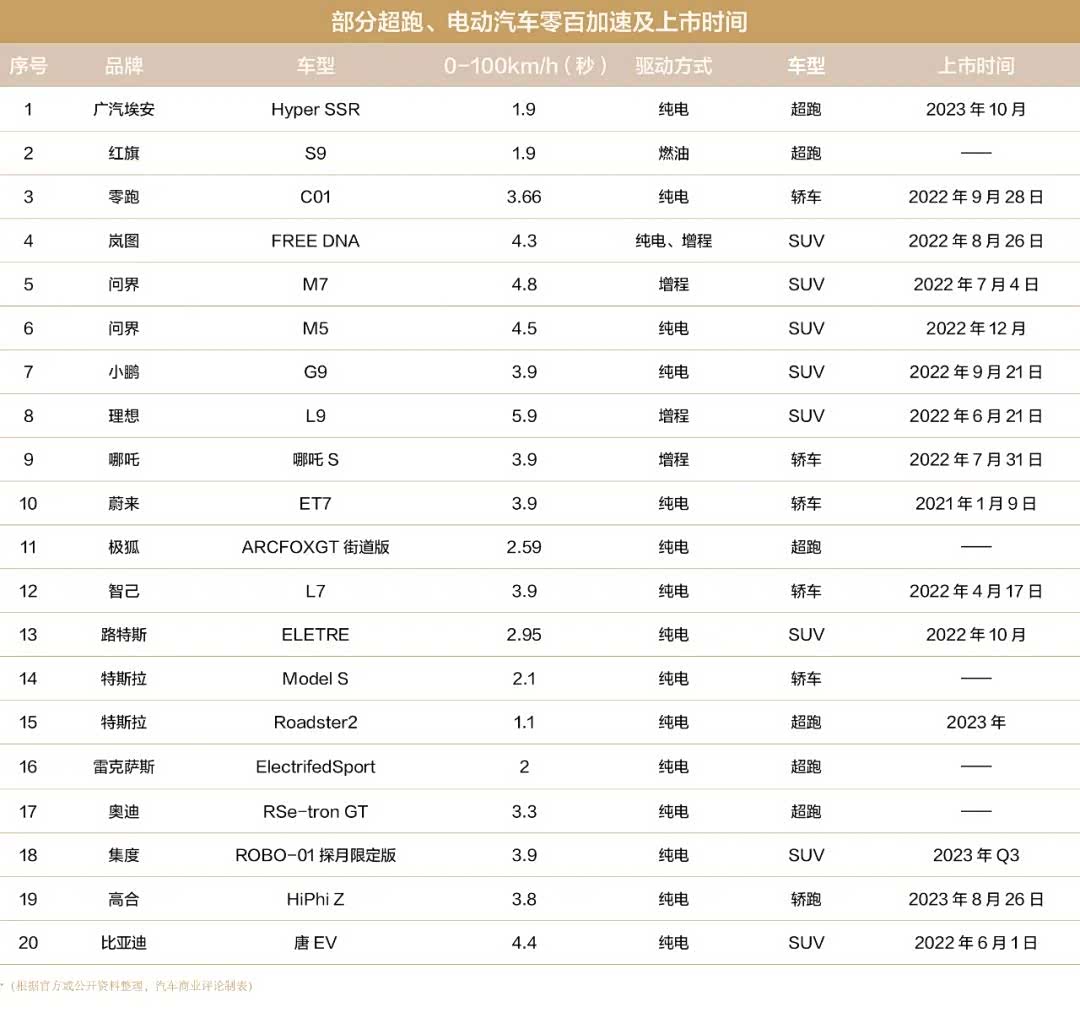 9月15日,广汽埃安发布全新LOGO和全新高端品牌“Hyper昊铂”,同时还发布Hyper昊铂旗下的首款超跑——Hyper SSR,2款车型预售价分别为128.6万元和168.6万元,预计2023年10月量产交付。Hyper SSR将采用纯电动,最大功率1225马力,最大扭矩12000牛·米,0-100km/h加速时间仅为1.9秒。