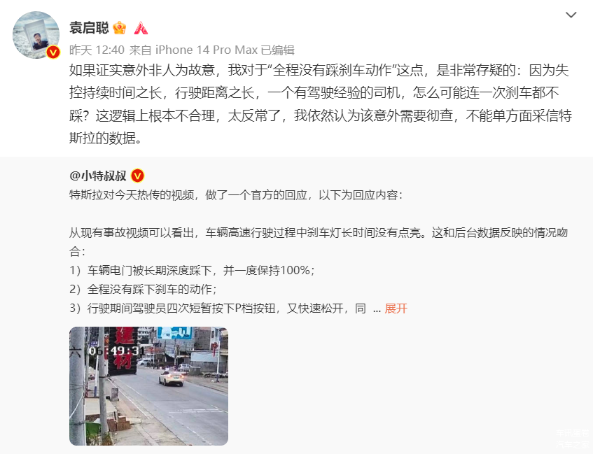 蛋卷个人觉得,刹车是最高优先级的操作,如果驾驶员踩了刹车,车子不可能一直加速的,汽车是由庞大的工程师团队和海量的资金打造的现代工业产物,我更相信人会出错,电脑不会出错。更何况是世界上三电做得最好的品牌,如果它犯了刹车失灵这种低级错误,那么是不是意味着国家质量监督局也不可信了呢?我相信专业,特别是国家级的专业人士。个人认为误操作的可能性会更大。