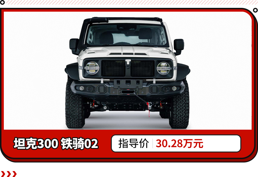 坦克300 铁骑02作为特别版车型,它所面向的是那群对越野有更高要求的消费人群,因此会配有更高质素的越野配置,硬派形象更加浓厚。