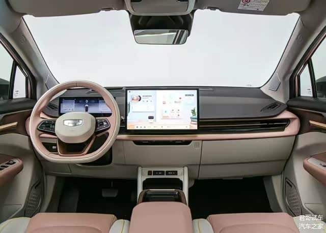 几何M6内饰设计简约,10.2英寸仪表盘+14.6英寸中央触控大屏十分吸引眼球,搭配 LOFT式无界智联中控台,滑动支撑扶手搭配手机无线充电平台,在视觉上有不错的开扬感和符合人机工程学。值得一提的是,新车匹配华为HarmonyOS系统,支持华为应用市场,语音交互、跨屏互联共享、OTA远程升级、情景模式、L2只能驾驶辅助功能等。