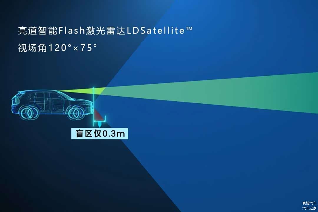 以亮道智能发布的Flash激光雷达LDSatellite™系列参数为例,视场角120°×75°,安装于车头或车身两侧位置时,视觉地面盲区小于0.3m,可以精准探测到各类车身近距低矮物体,能够最大限度地帮助车辆消除因感知盲区产生的CornerCase。