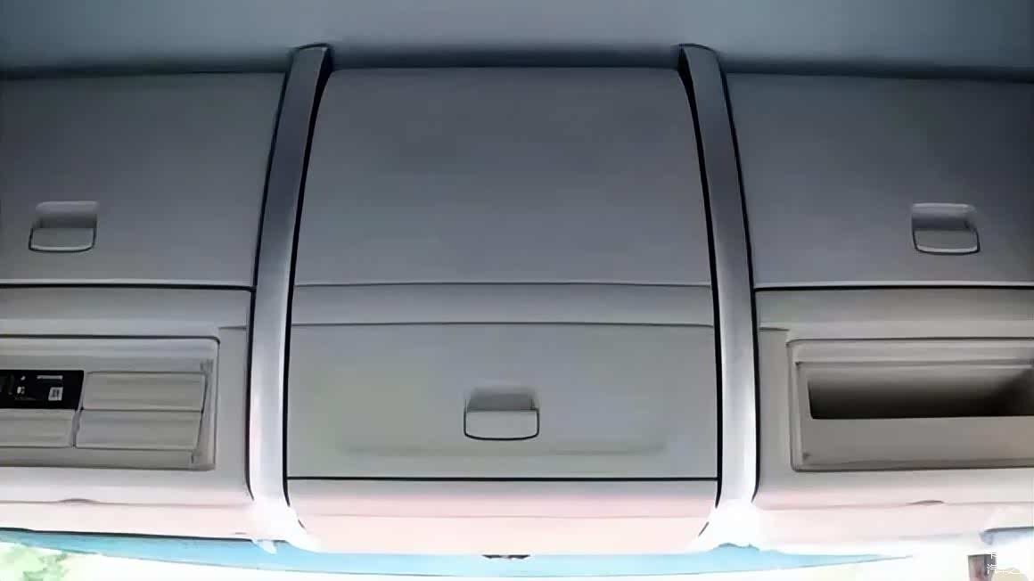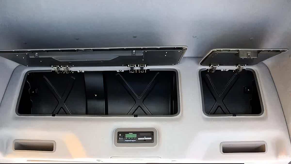 驾驶室顶部一大一小的储物柜,走的也是简约风,容量可观。