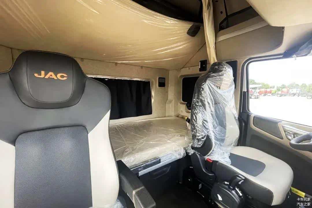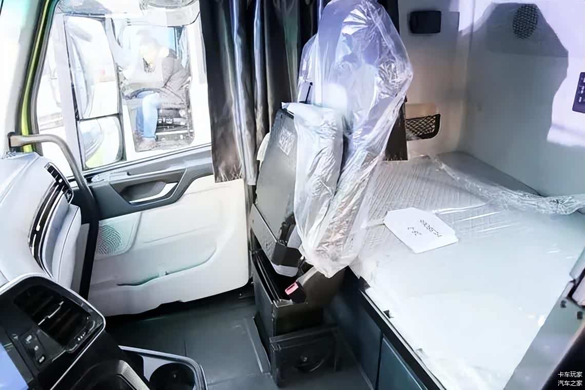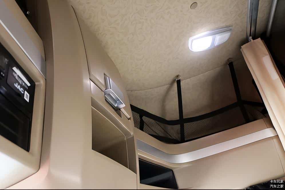而进入它的内饰,虽然其打造的不是“生活舱”、“房车”的概念,但从其中的空间利用来看,也是在很大程度上满足了长途运输用户对生活配置上的需求。