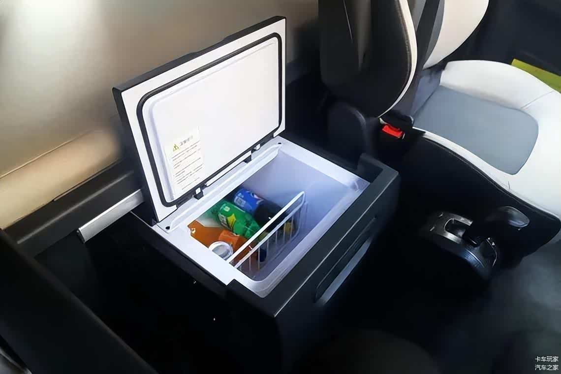 首先它采用的是纯平滑的地板设计,没有任何多余的凸起。卧铺方面,900mm宽的双卧,满足双人车对休息空间的需求,旁边设有单独的灯光开关,两侧还装备了杯托和储物格,而在卧铺的下方,则是布置了一个车载冰箱,容积表现可观。
