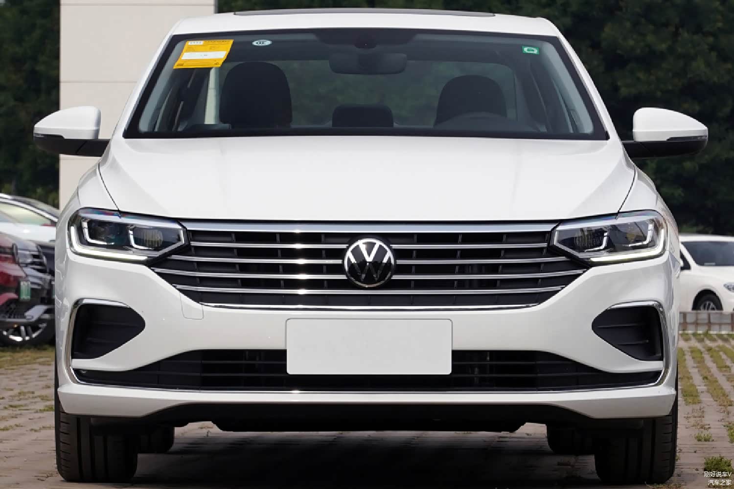 2023款新宝来的前脸更加的扁平化,厂家打算突出年轻。但是,却不够大气。上格栅中部是亮黑色的大众LOGO,两侧是单横幅镀铬条,格栅上部机箱盖处宽边镀铬饰条与两侧大灯组相连,整个中网格栅与大灯之间是一个贯通化的整体视觉效果。呈现出一种年轻化、运动化的效果。