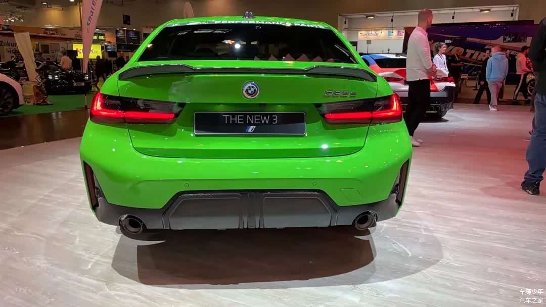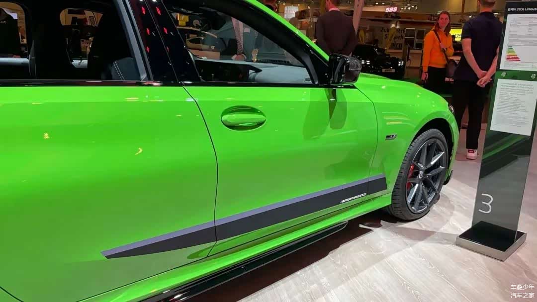 这是一台中期改款之后的宝马3系,车漆是个性化定制的Verde Mantis(螳螂绿?),多处还都配备了M Performance Parts零部件。