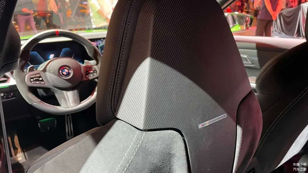 内饰也有不少性能化的升级,方向盘用Alcantara材质包裹,换挡拨片、仪表台、中控区域以及座椅后方等都替换了碳纤维材质,而且带有M Performance的专属标识。