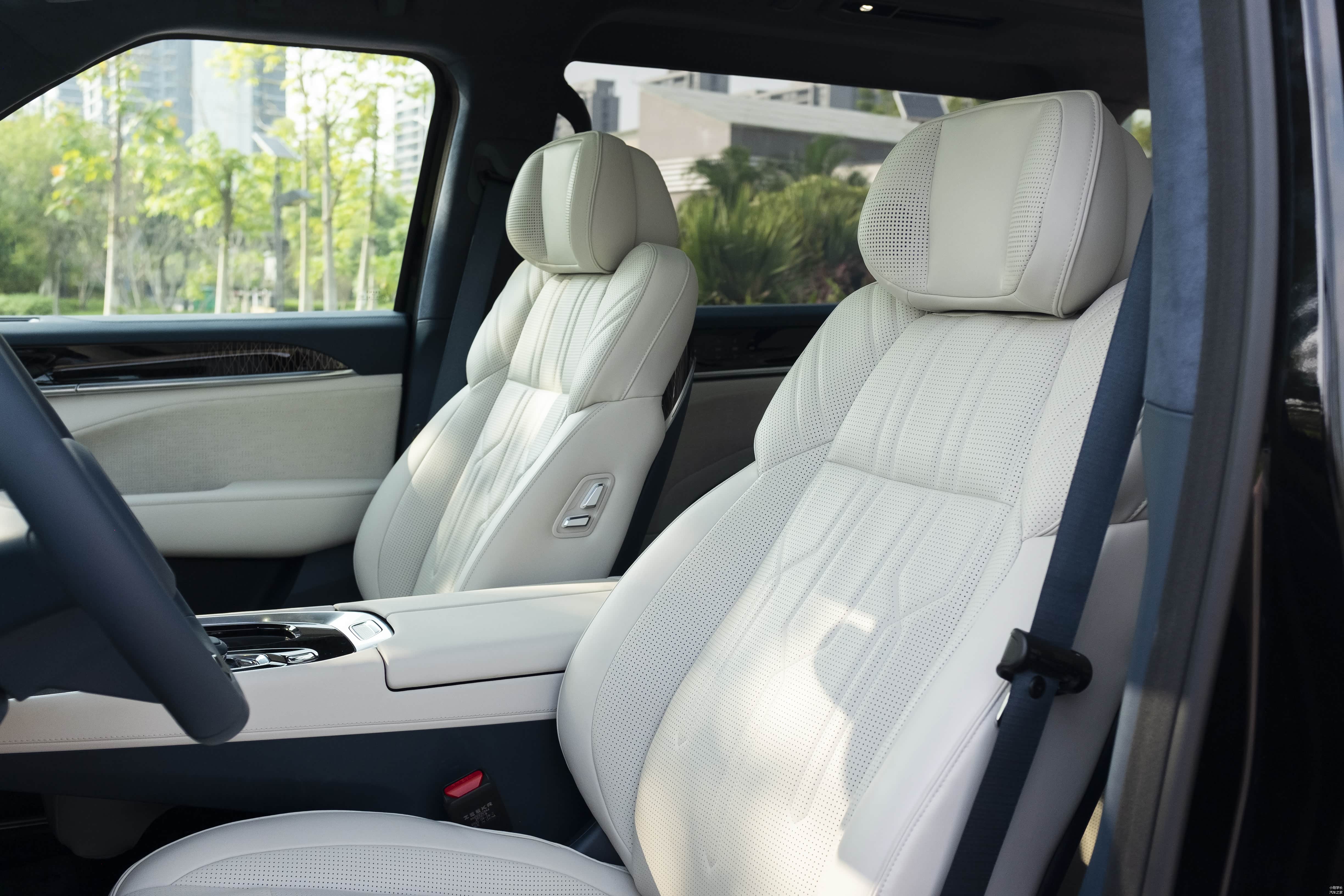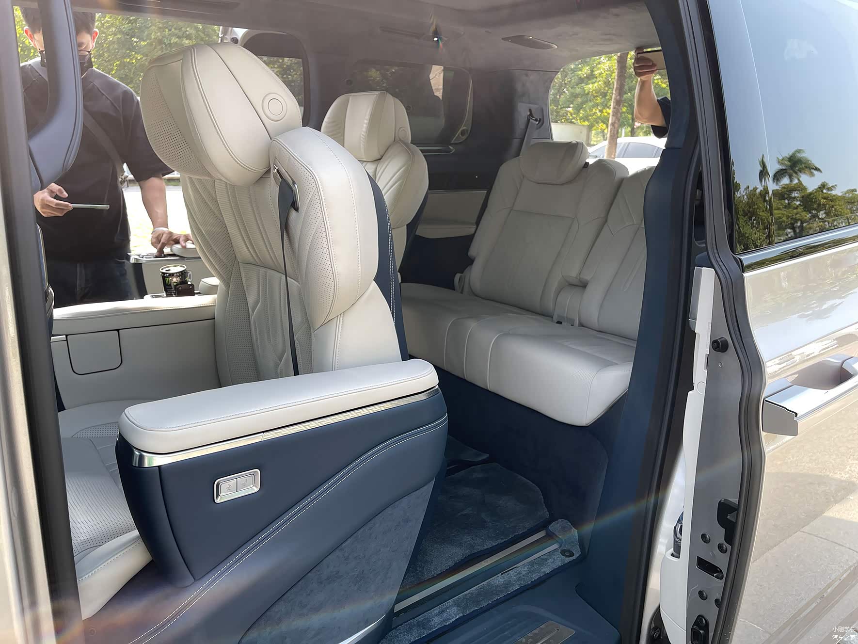 第二排则称谓头等舱独立座,全系都标配Soft Nappa真皮,配备了腿托和小桌板,座椅拥有3档强度5种模式舒缓腰背最大65度调节,座椅最长50cm延展。