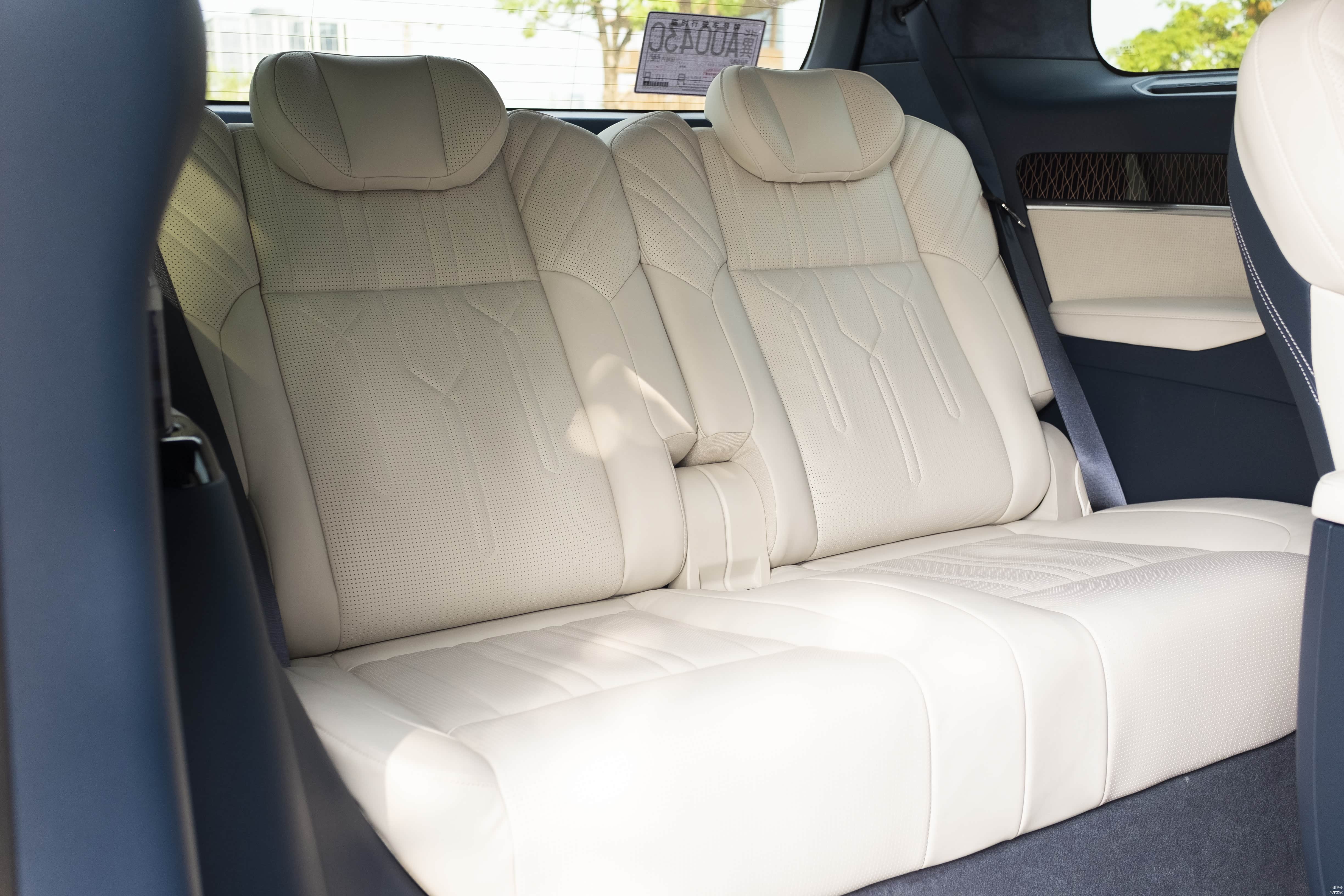 前排有类似001车型的影子,中控贯穿的饰板样式也体现了豪华感,科技与豪华融合,另外减少很多物理按键,基本操作依赖语音交互或者屏幕菜单调取,对于习惯按键驾驶员需要一点学习时间。