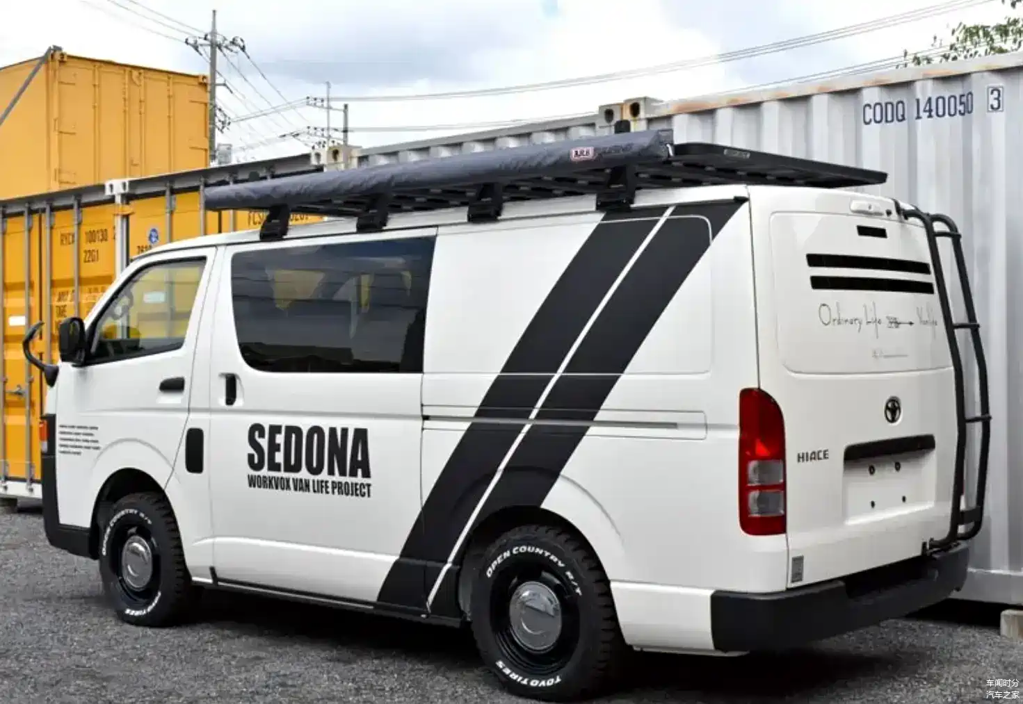 车尾部分的设计非常简洁,方方正正的造型看上去也比较硬朗,并且还在尾部配备了铝制爬梯,两侧的尾灯设计非常简洁,采用了竖置状的设计,具有很高的辨识度。