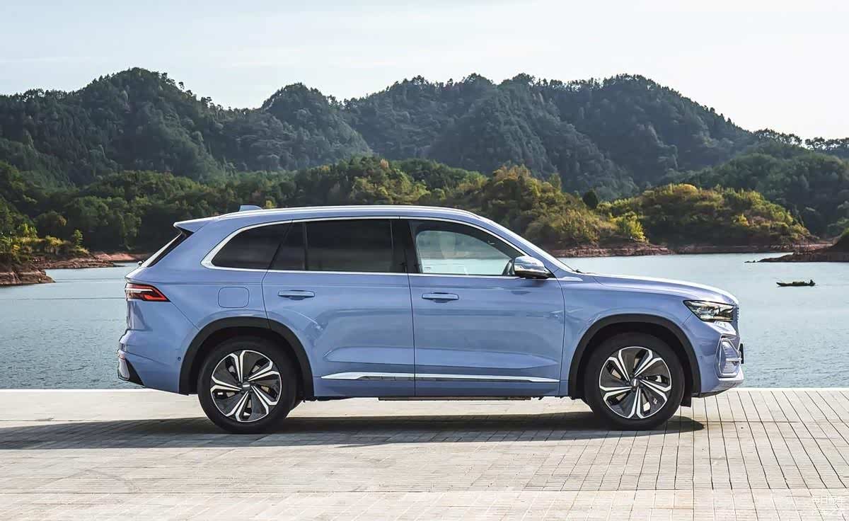 侧面来看,星越L增程电动版车身端庄大气,各部分的比例都十分协调。车顶行李架、窗线和侧裙部分增加镀铬装饰,提升精致感。新车采用两款全新的专属配色,分别是望舒蓝与LOMO Grey磨砂灰,也显得非常有个性。