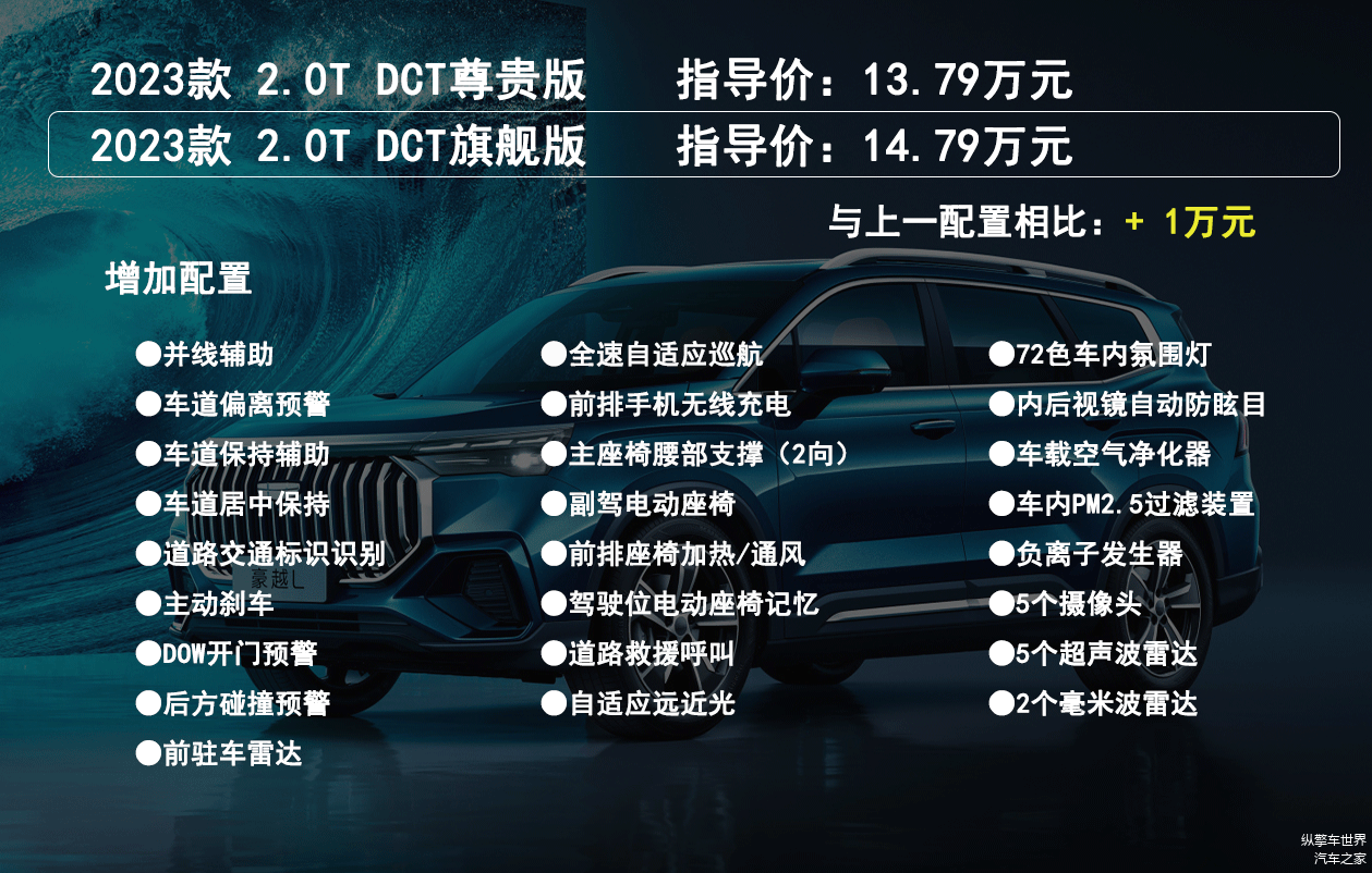 2.0T DCT旗舰版在配置上进行了明显提升,除了增加了很多驾驶辅助功能外,该版本还增加了前排座椅加热/通风、道路救援呼叫、车载空气净化器等,对于主打全家出行的7座车型,个人认为这些功能还是很有必要的,如果预算压力不大,建议直接入手顶配车型。