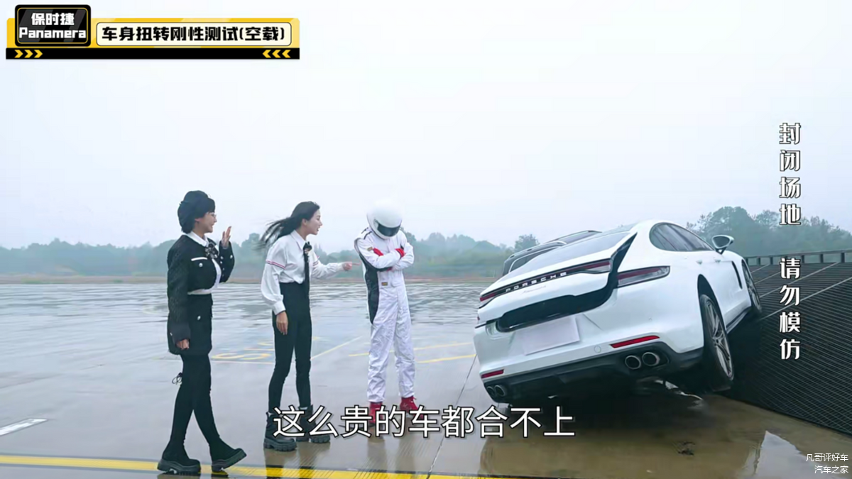 咱们一起来看看吧,这6款豪华车型分别是保时捷Panamera、奔驰GLS、宝马7系、雷克萨斯RX、凯迪拉克XT5和比亚迪海豹。测试项目分为空载车身扭转刚性测试和载人车身扭转刚性测试,空载车身扭转刚性测试很简单,通过斜坡,让车辆的一轮悬空,给车辆施加外力,这就好比我们平时上马路牙子,一轮在马路牙子上面,其余车轮在下面,车辆必须自身扭转刚性够强,才能稳住车身不产生形变。