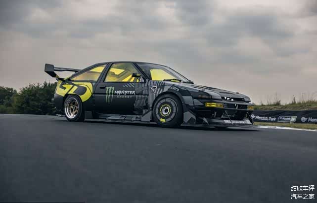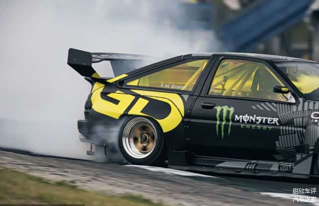 作为一款漂移神器,AE86首先拥有前置后驱的布局,这种布局天生就是最好的漂移车,加上只有一吨的车重,让整个车身不需要做更多的轻量化,原来来说动力肯定不能作为专业漂移赛事来用,漂移赛事来说更重要的是:承受大功率、可靠的传动系统、匹配大量的转向锁和规则允许的最软、最宽的轮胎。