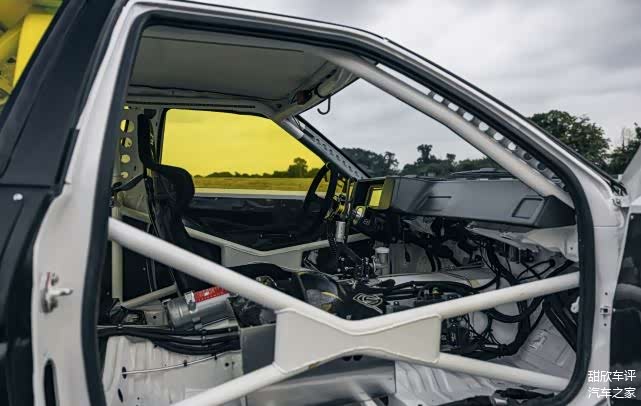 内饰几乎是典型的漂移车状态。带有 TRS 多点式安全带、碳纤维仪表板和带有全车控制的定制方向盘的单独 Sparco 桶形座椅使一切尽可能简约而实用。