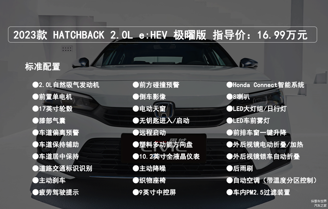 看完4款燃油车型,我们再来看混动版本。e:HEV极曜版售价16.99万元,价格与燃油版的顶配车型价格一致,不过在配置上要有一定的缩水,比如方向盘使用了塑料材质,座椅也只有织物材质,并且没有配备矩阵大灯、并线辅助、手机无线充电等功能,当然这个版本也多了方向盘换挡和主动降噪功能,综合来说配置水平不算低,再加上混动系统的加入,在动力体验上也有一定的提升,预算充足的情况下还是可以考虑入手的。