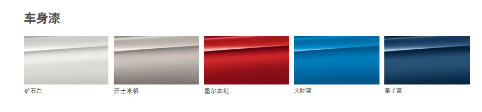 外观配色方面,新车提供矿石白、开士米银、墨尔本红、天际蓝、量子蓝共5种外观色可选,新增的耀熠版车型只提供矿石白、天际蓝、量子蓝3种外观色可选。轮毂方面,新车根据不同配置,提供17英寸和18英寸两种尺寸轮毂可选。
