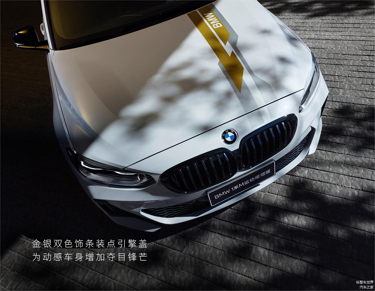外观方面,新款宝马1系整体沿用了现款车型的设计,新车前脸依旧是标志性的双肾进气格栅,再加上“蓝天白云”车标以及两侧造型犀利的大灯组,从而给人一种年轻动感的视觉感受。新增的耀熠版车型在车机盖以及车侧位置加入了金银双色饰条,个性十足。