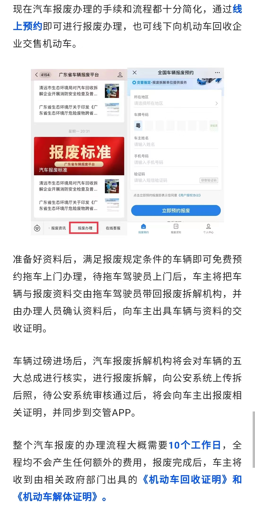 汽车报废所需材料