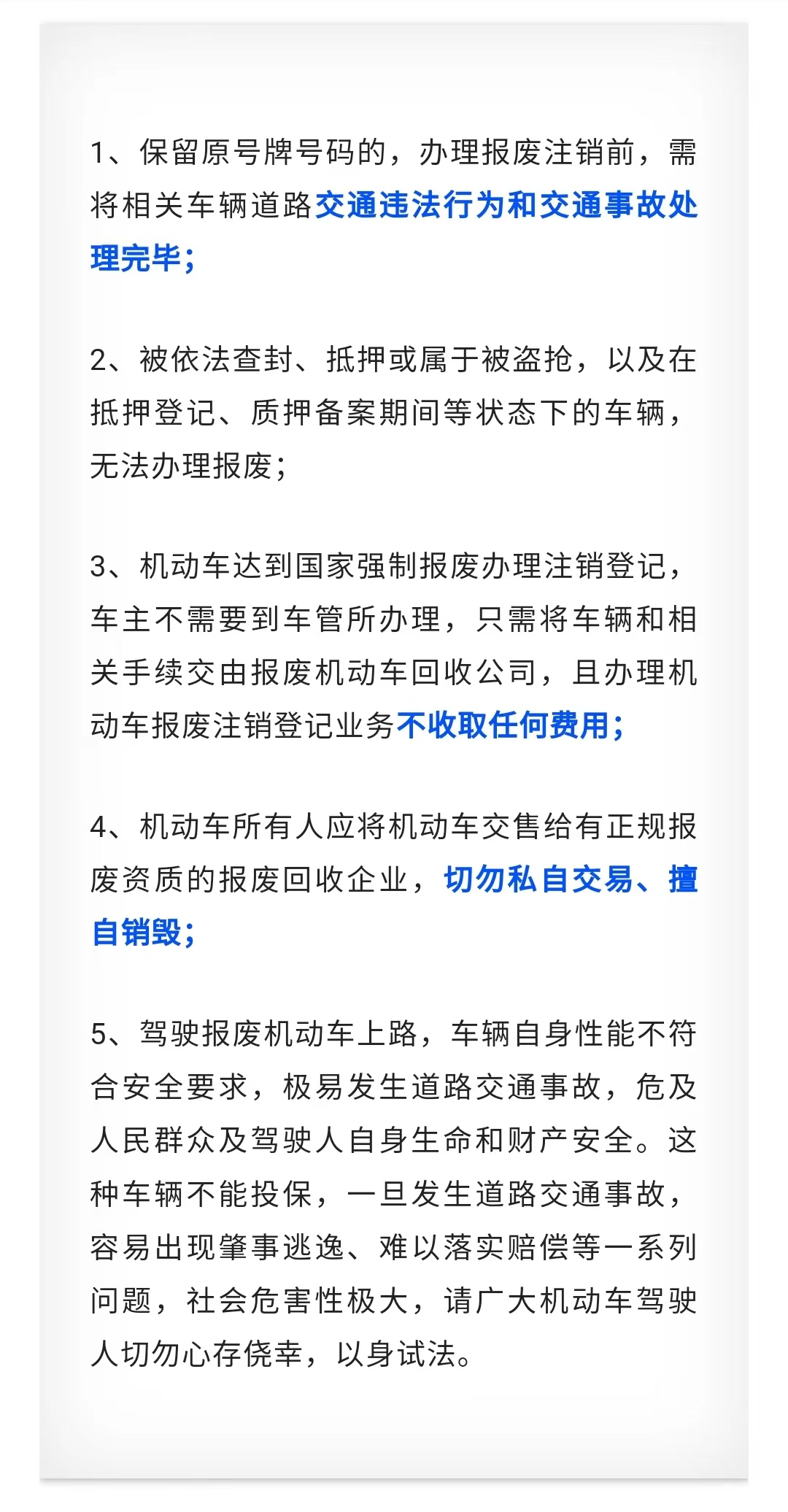 根据我国《机动车回收管理办法》,报废汽车应当及时交付给报废汽车回收企业。任何单位或者个人不得将报废汽车出售、赠予或者以其他方式转让给非报废汽车回收企业的单位或者个人;不得自行拆解报废汽车。