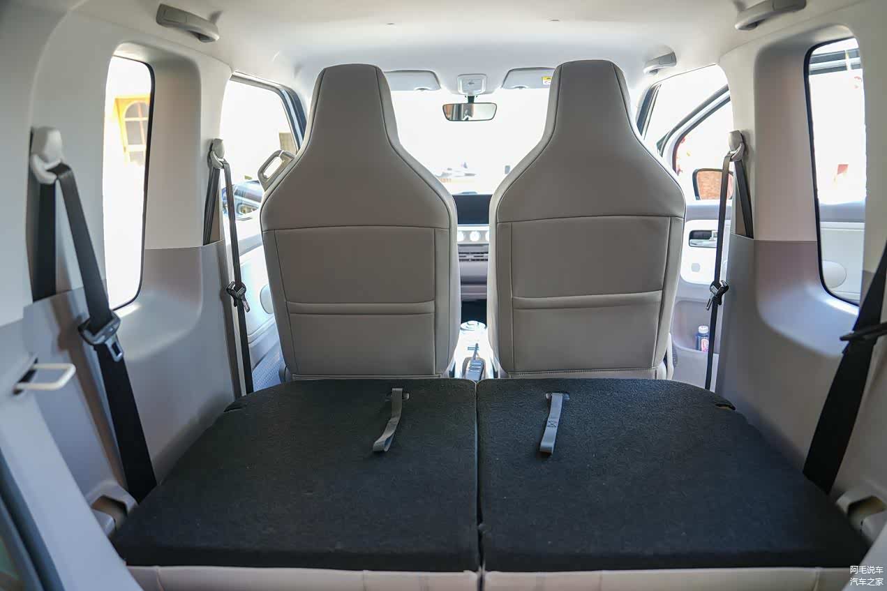 接下来,我们再来聊聊Air ev睛空的空间,虽然作为定位为城市家庭第二辆品质小车,空间上不必像第一辆车那么大,但是一定的用车空间还是需要的。Air ev晴空有两座版、四座版,可以满足车主的多种出行方式,我这次试驾的是四座版本,车身尺寸为2974*1505*1631mm,轴距2010mm,这个车身尺寸不论是两口之家还是四口之家,短途出行在驾乘上是没有问题的,满座的情况下行李空间就有点难尽人意。但是在只使用两座的情况下,后排座椅完全放倒状态拥有704L的后备箱空间,可同时容纳两个32寸、一个28寸行李箱,日常出行应该没有任何问题。