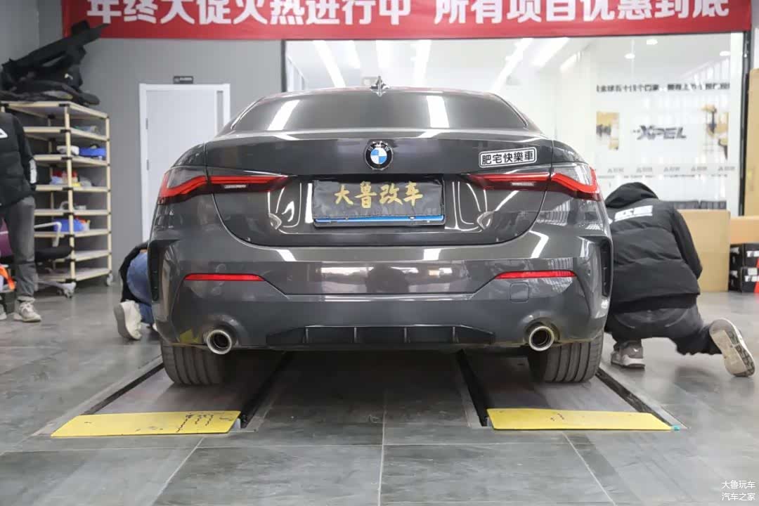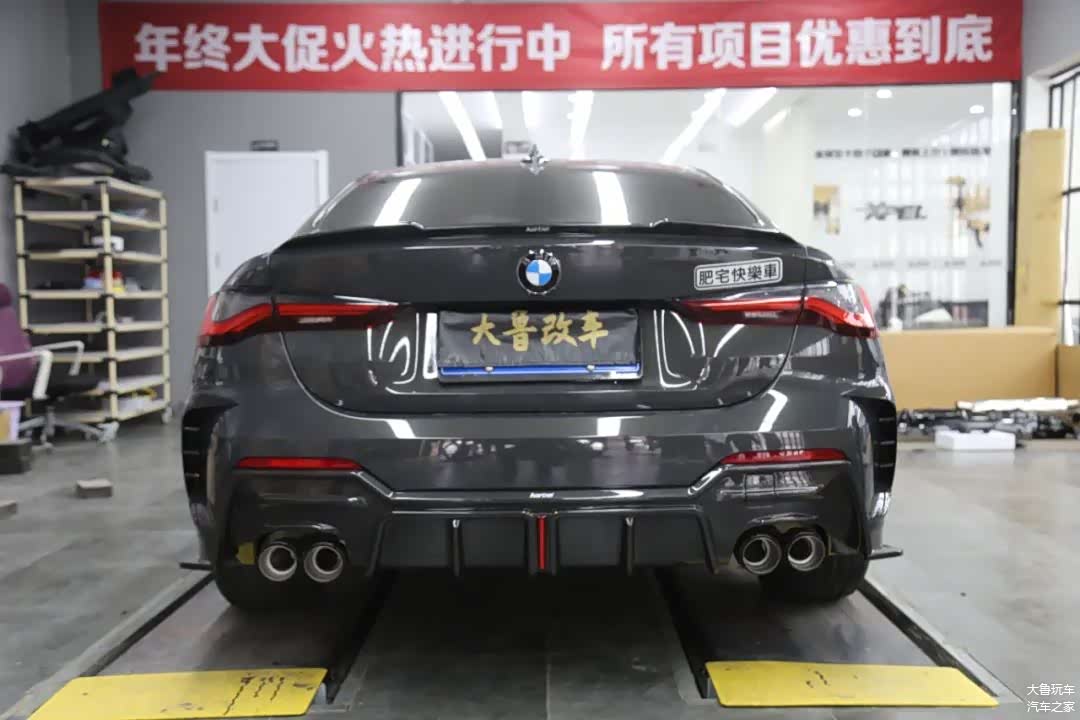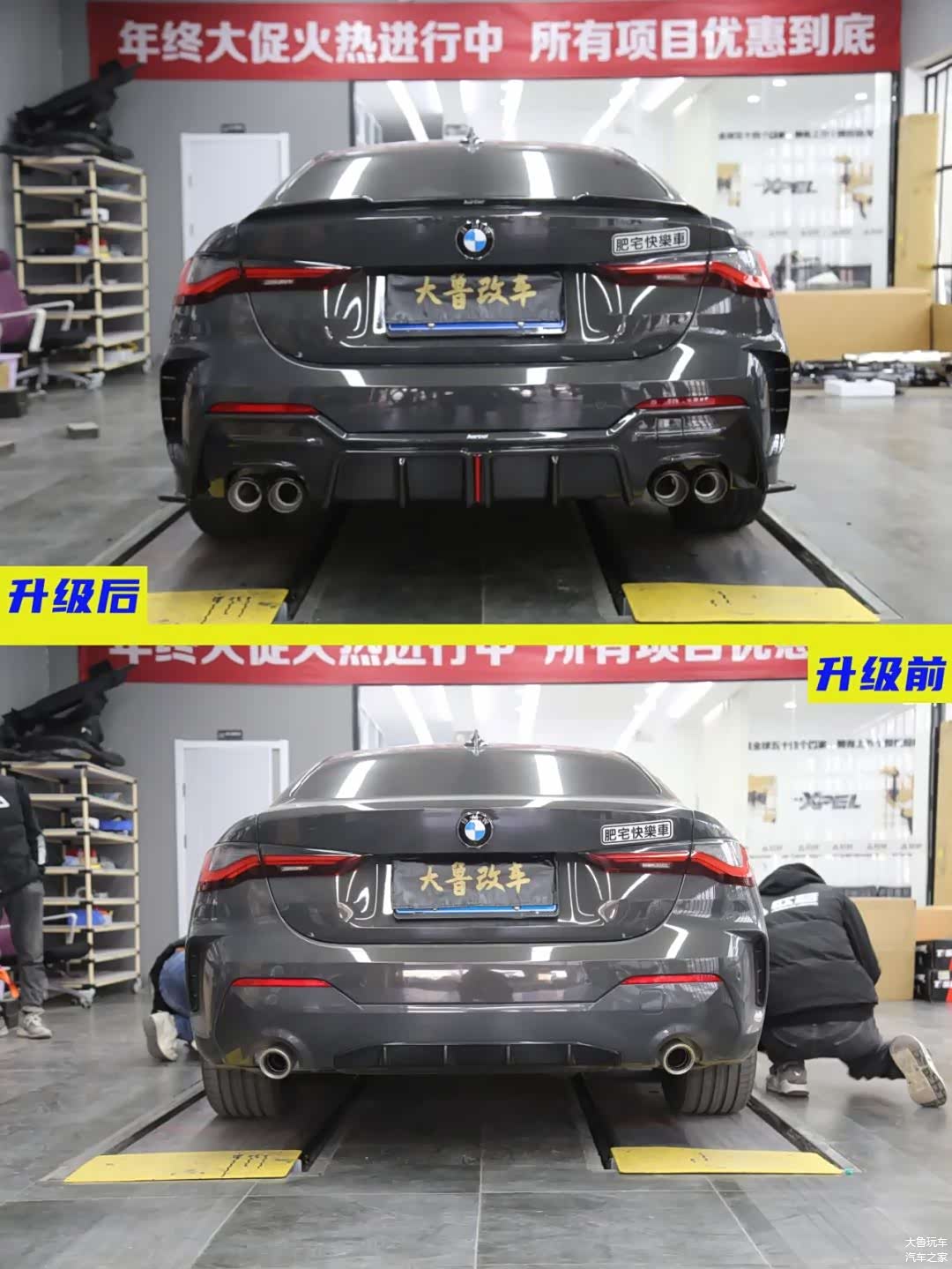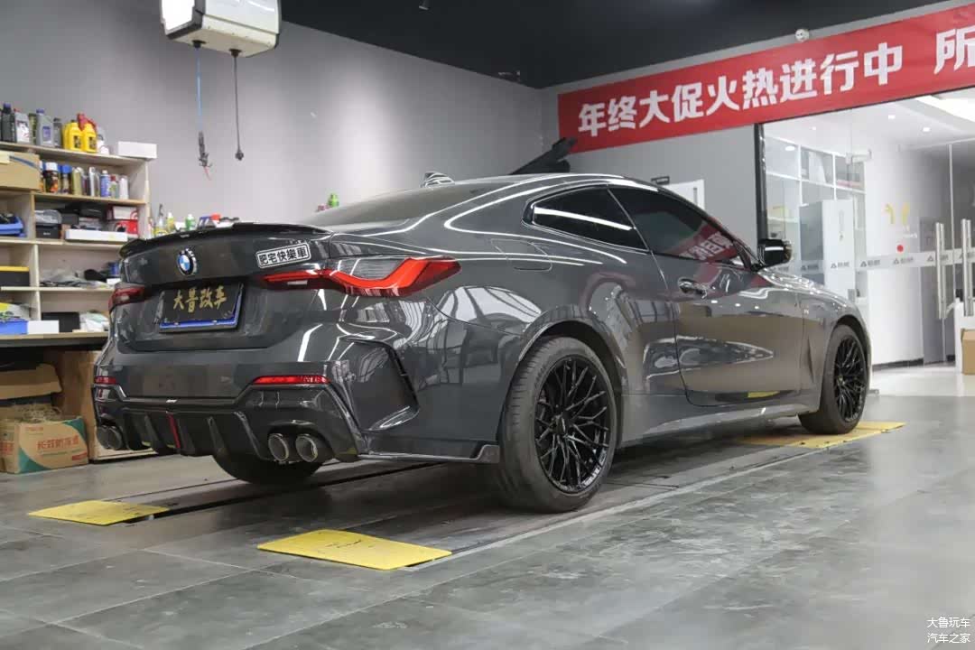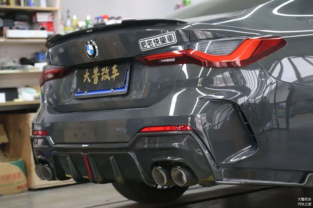 今天的改装主角是一部 宝马四系(图片 | 参数 | 询价),改装项目包括:亮黑轮毂+卡布尔后唇+后杠包角+尾喉+尾翼+黑色中网+镀铬饰条贴黑。