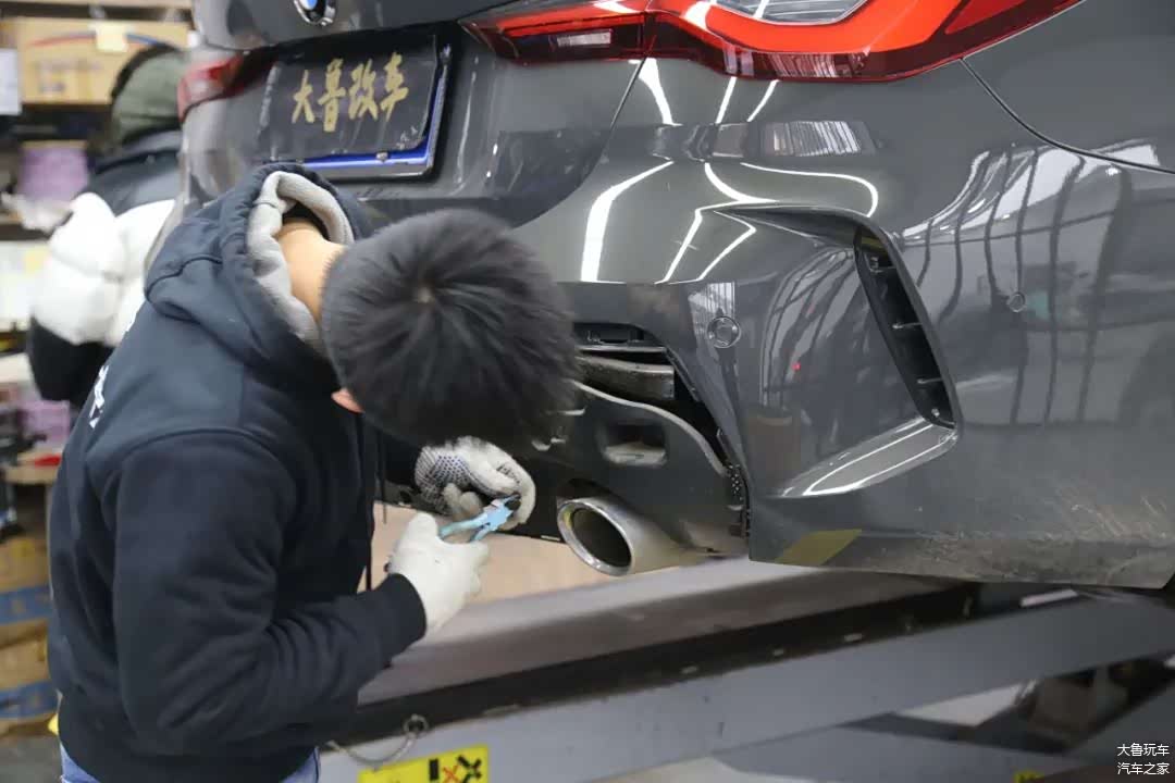 来看看这套卡布尔的后唇尾喉是不是很帅气,这次把尾喉升级成双边四出的圆筒尾喉,还是天蝎的,下次可以把排气升级成真天蝎的。这台车改这些东西升级的是很快的,车主在这等一会就完成了。