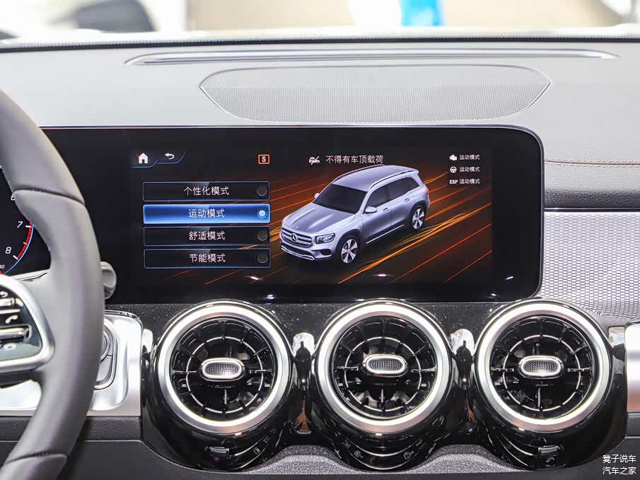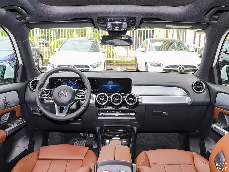 奔驰GLB 2023款 GLB 200 动感型采用了家族式的设计风格,整体设计看上去有着很强的科技豪华气息,配备了硬朗的多功能方向盘,内部集成了很多的常用的功能性按键,搭配10.25英寸的的全液晶仪表盘和10.25英寸的中控液晶显示屏组成的双联屏,营造出了强烈的科技氛围。