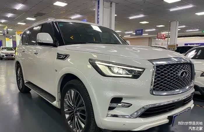第三辆,英菲尼迪QX80,长度5.34米,宽2.03米,高1.93米。轴距3.07米,属于日产途乐的豪华版。但是定位却不一样,一样是5.6L的自然吸气发动机,马力和扭矩也是一样的。这款车美版中,每款都有两驱版本。
