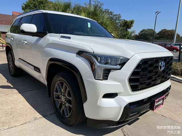 第一辆,丰田红杉。长5.285米,宽2.02米,高1.89米。轴距三米一,别看他车长不算是最长的,但是轴距却一点都算短。新一代的红杉全都是3.5t油混动力。红杉的新版本比老版本看起来年轻不少,但是个头也就显的没有老款那么的臃肿。这款车已经在天津港陆续到港。