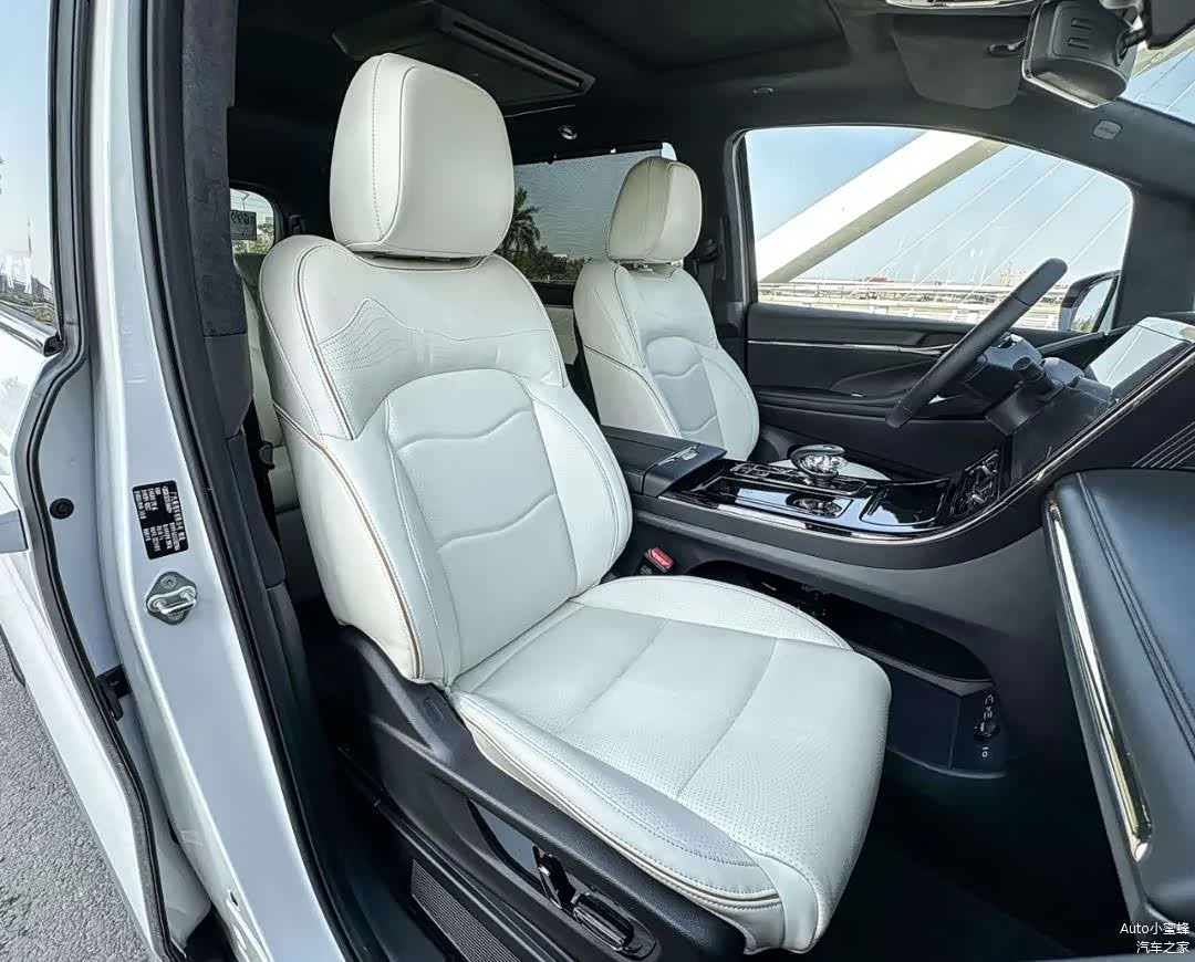 车厢内采用了2+2+3的7座布局,其中第一座椅具备多向电动调节、座椅加热、座椅通风功能。
