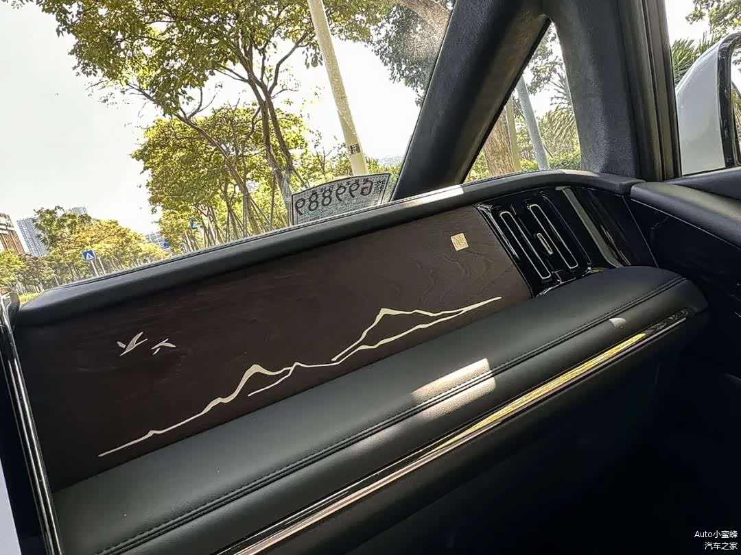 M8宗师系列的内饰采用简洁的造型设计,除了采用了大面积的软质面料包覆以外,副驾的黑胡桃木面板上还运用了铜线勾勒出“云山白鹭”的山水画,带来别具一格的豪华韵味。