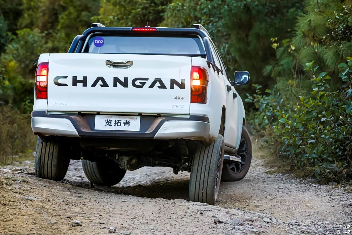 动力方面:长安览拓者是“第一辆蓝鲸皮卡”,搭载皮卡版蓝鲸新一代2.0T发动机,匹配采埃孚8AT变速箱。最大功率233马力,1900转/分时,扭矩即达390牛·米,百公里加速10s以内,彻底打破了皮卡高油耗刻板印象,实现了高性能与经济性“双优”。驾驶长安览拓者纵擎奔跑,你会有一种酣畅淋漓的快感,动力真的是随叫随到。在起步时非常轻松顺畅,轻踩油门即可获得不错的动力输出,完全是家用车的调校风格,而随着速度的不断攀升,长安览拓者的动力并没有被“弱化”,只要你舍得踩油门,发动机依旧会给你足够的自信,提速超车也完全没有问题。此外长安揽拓者还搭载博格华纳四驱系统与电控式后桥差速器锁,使得长安览拓者的爬坡能力和通过性也再上一个台阶,可以轻松跨越60%以上的坡度。