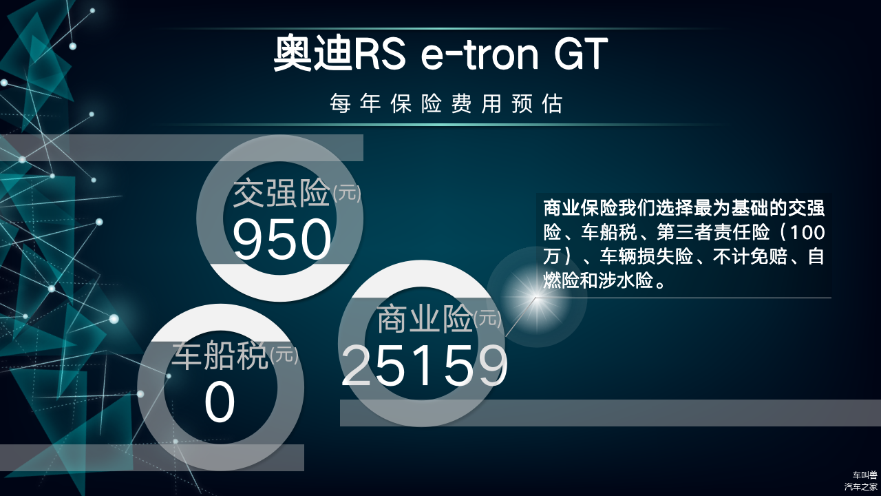 保险费用层面,商业保险我们仅仅以基础的交强险、车船税、第三者责任险(100万)、车辆损失险、不计免赔、自燃险、涉水险来计算,这几项的综合费用为25159元左右。