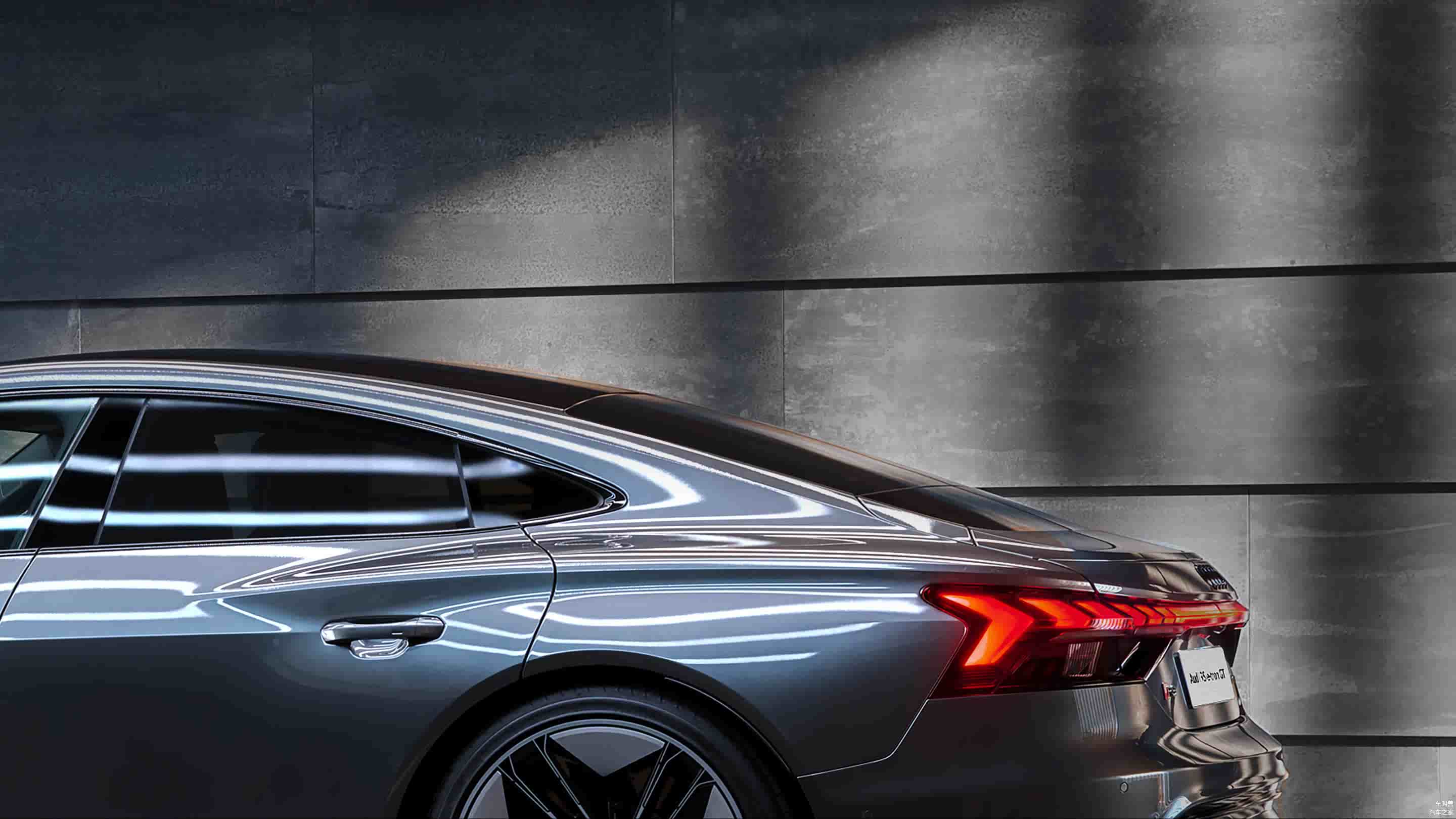 首先来看颜值,封闭的进气格栅在纯电时代下早已不是什么新鲜事,但占据前脸大半的黑色通风口设计,将前脸的宽度在视觉上进一步延伸,有点儿R8的杀气。当然,“灯厂”也不会放过任何一个在灯光上炫技的机会,除了大灯造型依旧犀利、点亮效果勾人心魄之外,还可选装激光大灯。