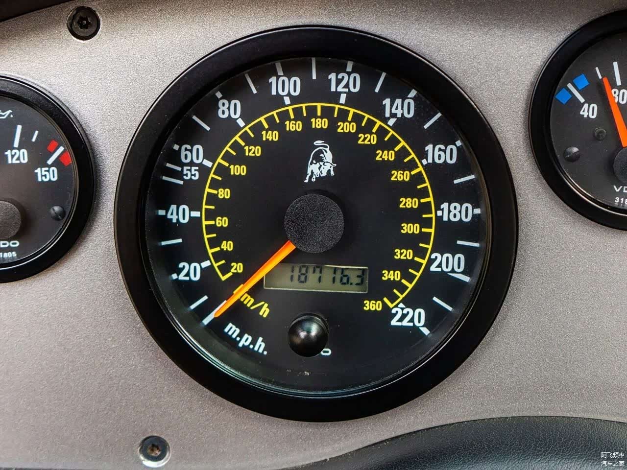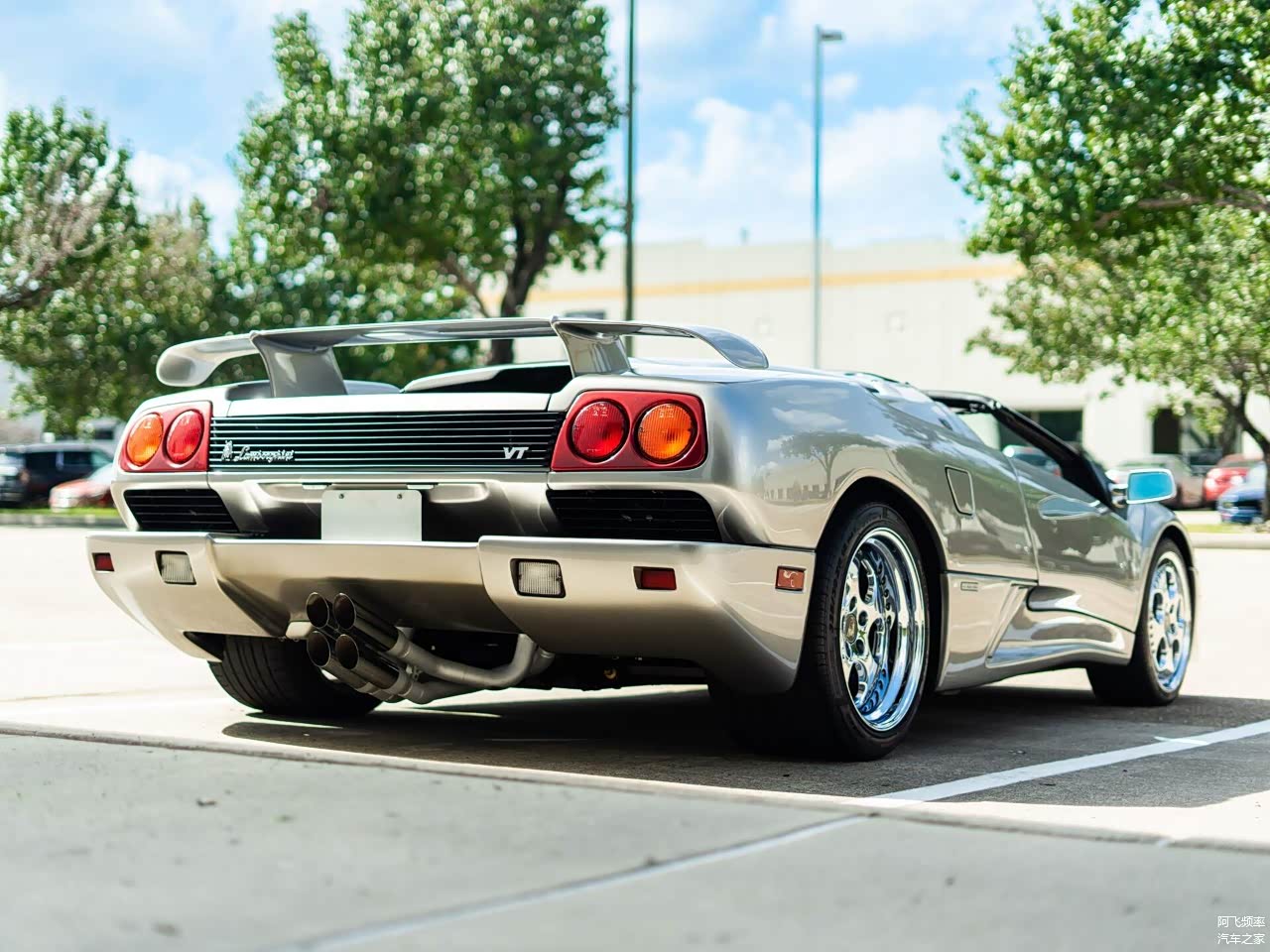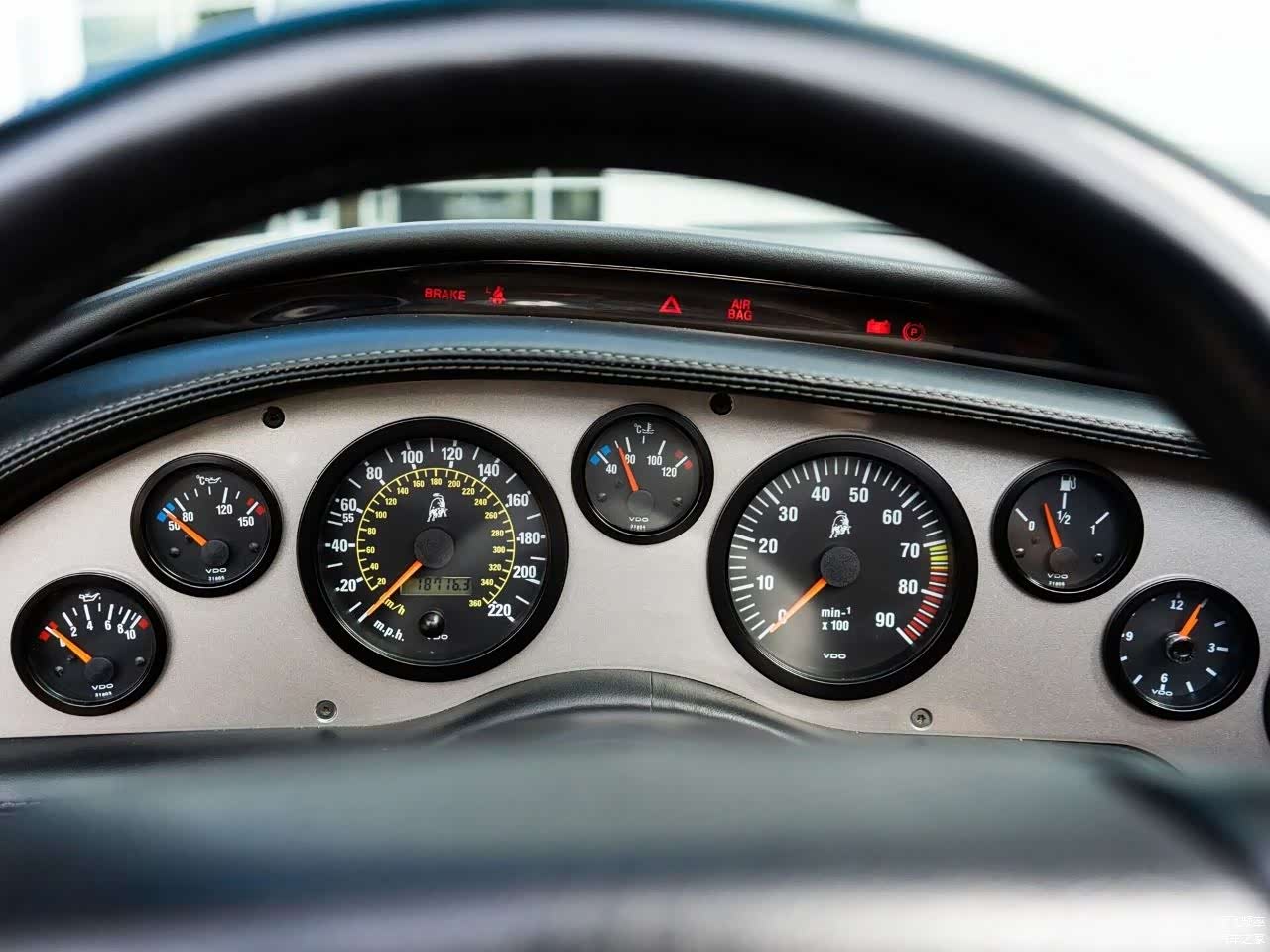照片里这款Diablo采用钛银金属漆,即便如此配合这样的外观可以说比当时路面上的任何一款车都要拉风。