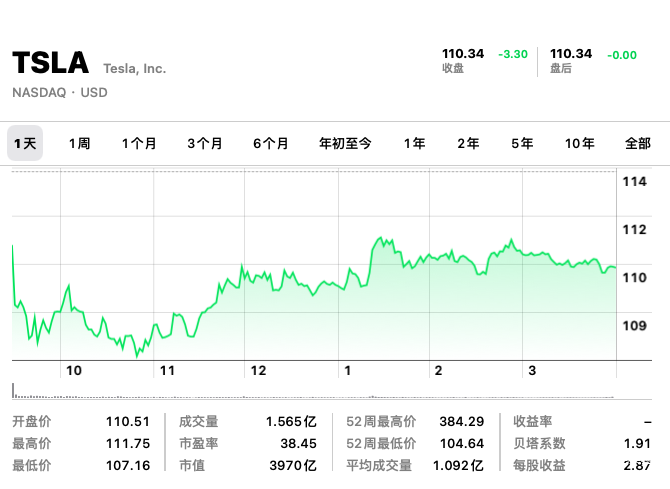 截止昨天收盘,特斯拉每股报价110.34美元,过去一年特斯拉股价累计下跌7成,已经跌到了近两年的最低水平。
