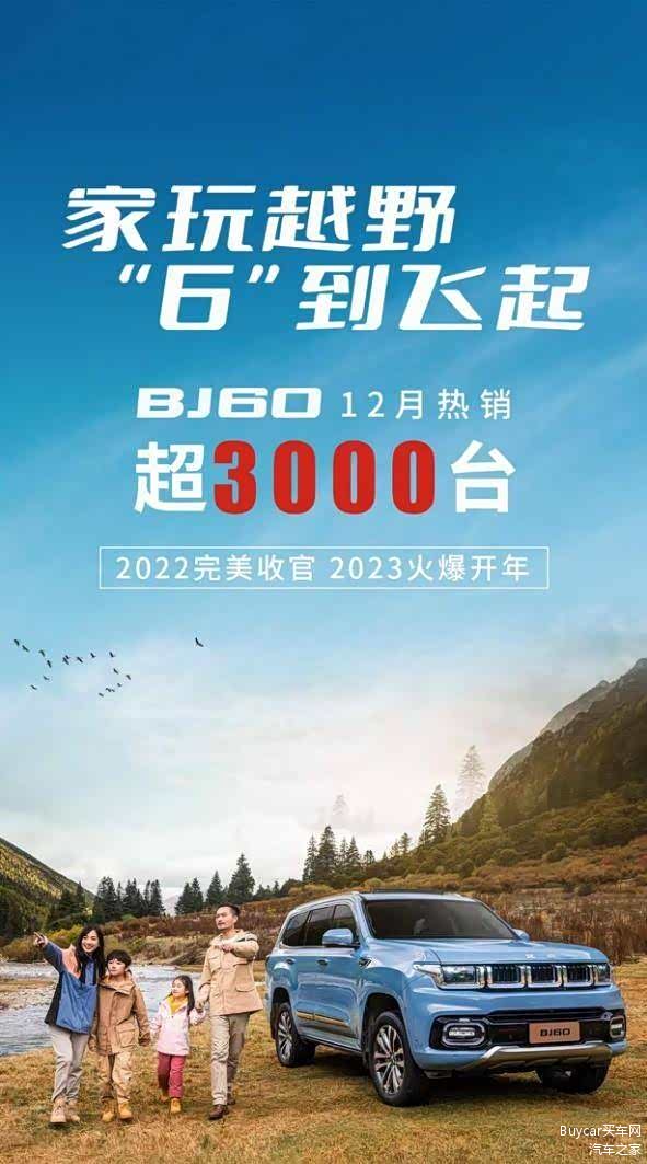 1月7日,买车网Buycar获悉,北京越野最新推出的BJ60在2022年12月份单月销量突破3000辆,作为交付首个完整月,BJ60取得的这份成绩足够亮眼,不愧“网红单品”称号。