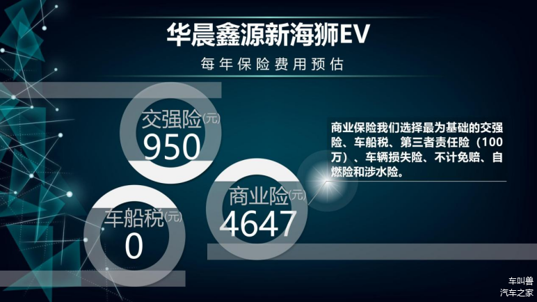 保险费用层面,我们以创富版为例说明,商业保险我们仅仅以基础的交强险、车船税、第三者责任险(100万)、车辆损失险、不计免赔、自燃险、涉水险来计算,这几项的综合费用为5597元左右。