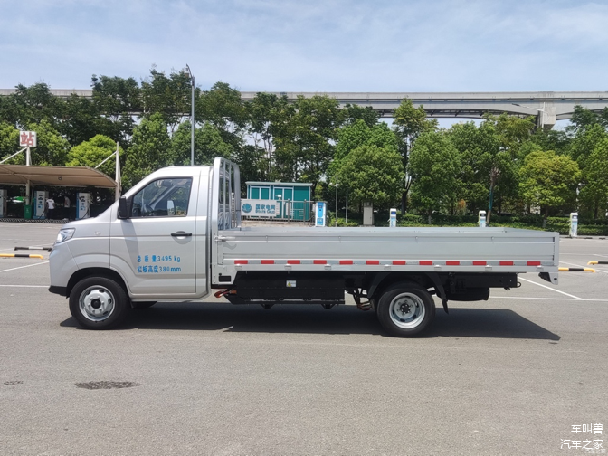 外观方面, 这台小车的造型设计非常简约质朴,提供栏板车、仓栅车和厢式车三种选择。我们主要来关注一下它的车身尺寸方面,小象EV栏板车豪华型的车身尺寸为5875*1830*2070mm,轴距3600mm。仓栅车豪华型的尺寸为5875*1920*2700mm,轴距3600mm,轴距3600mm,厢式车豪华型的高则为2750mm,其余尺寸均和仓栅车保持一致。