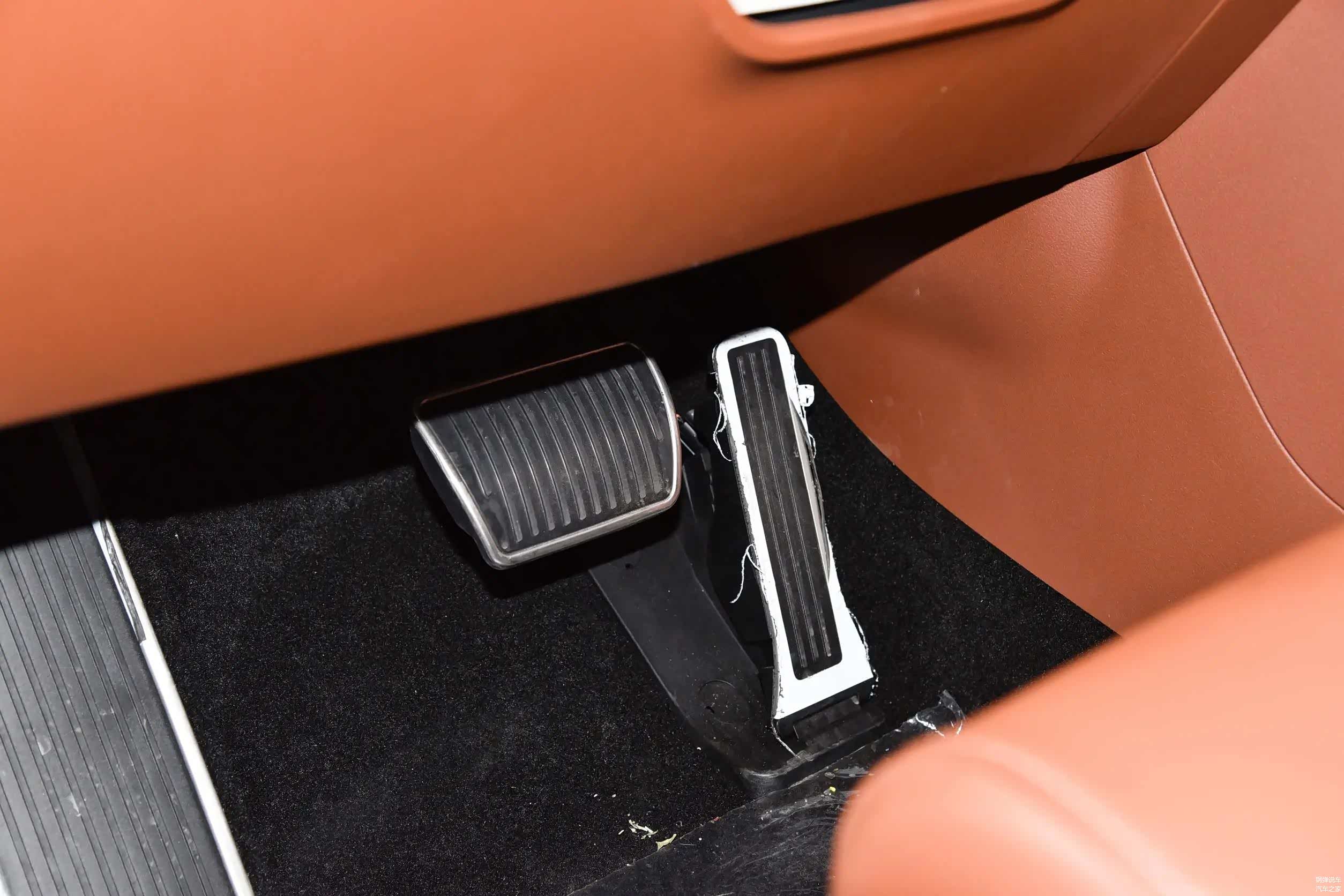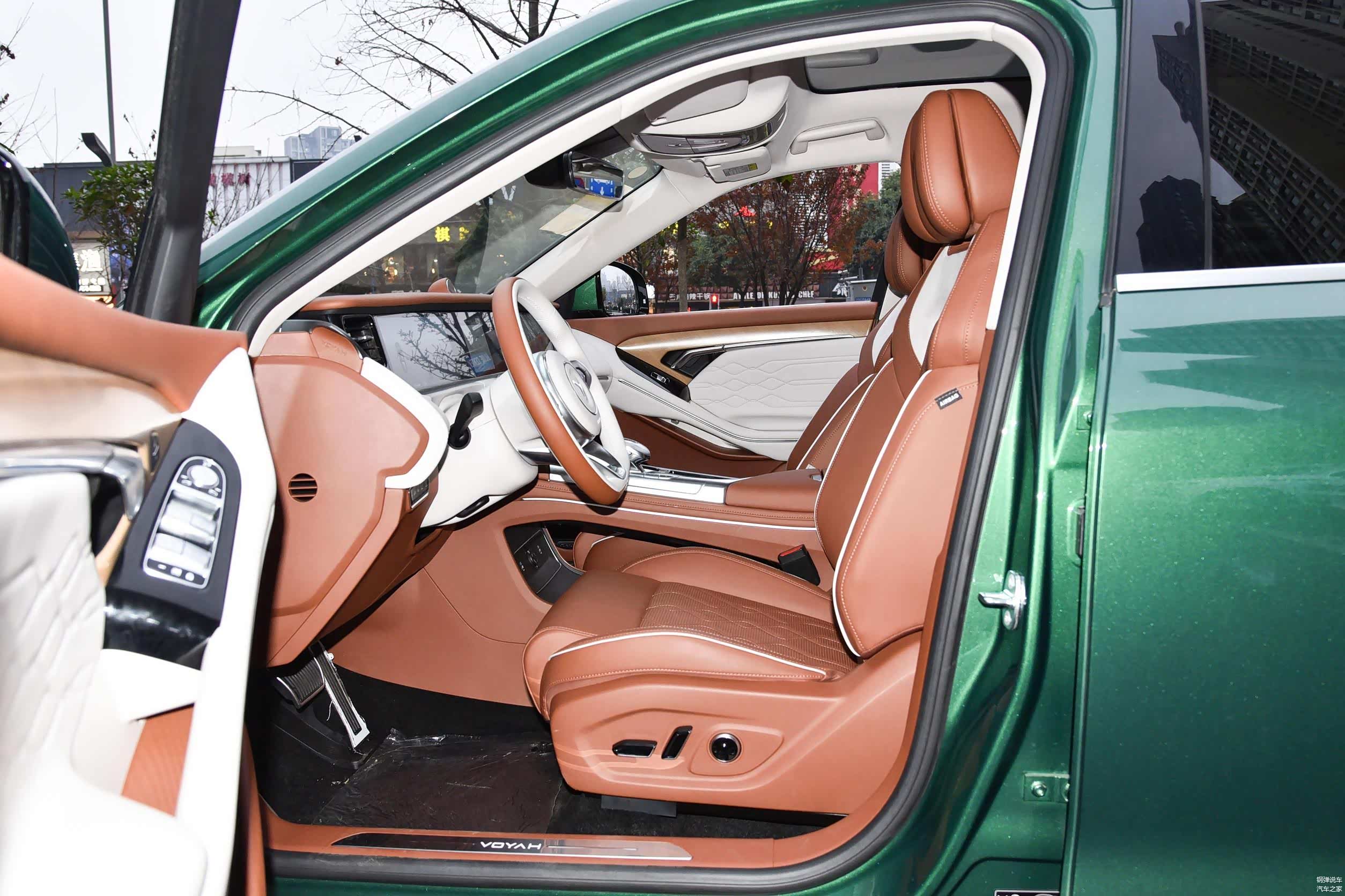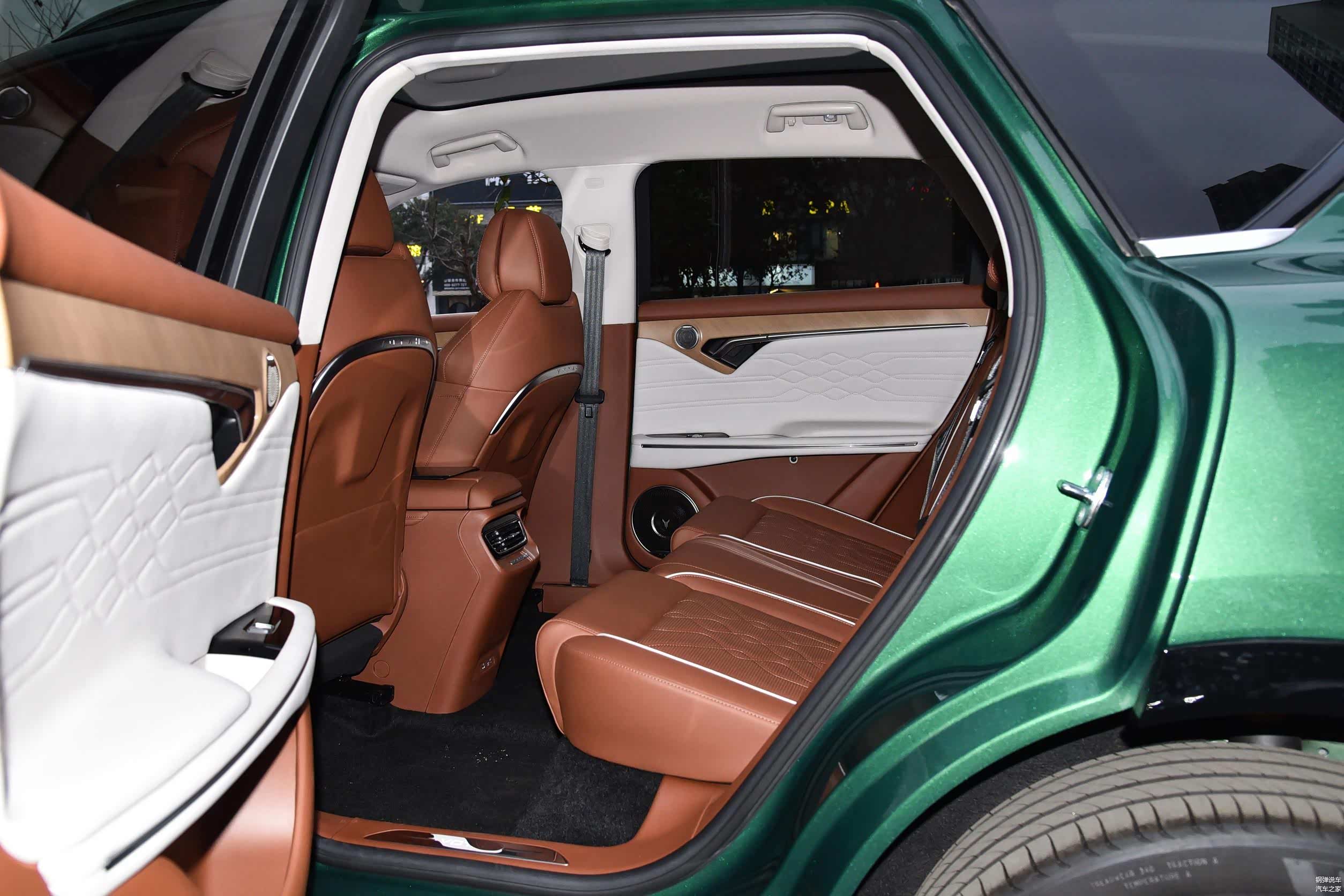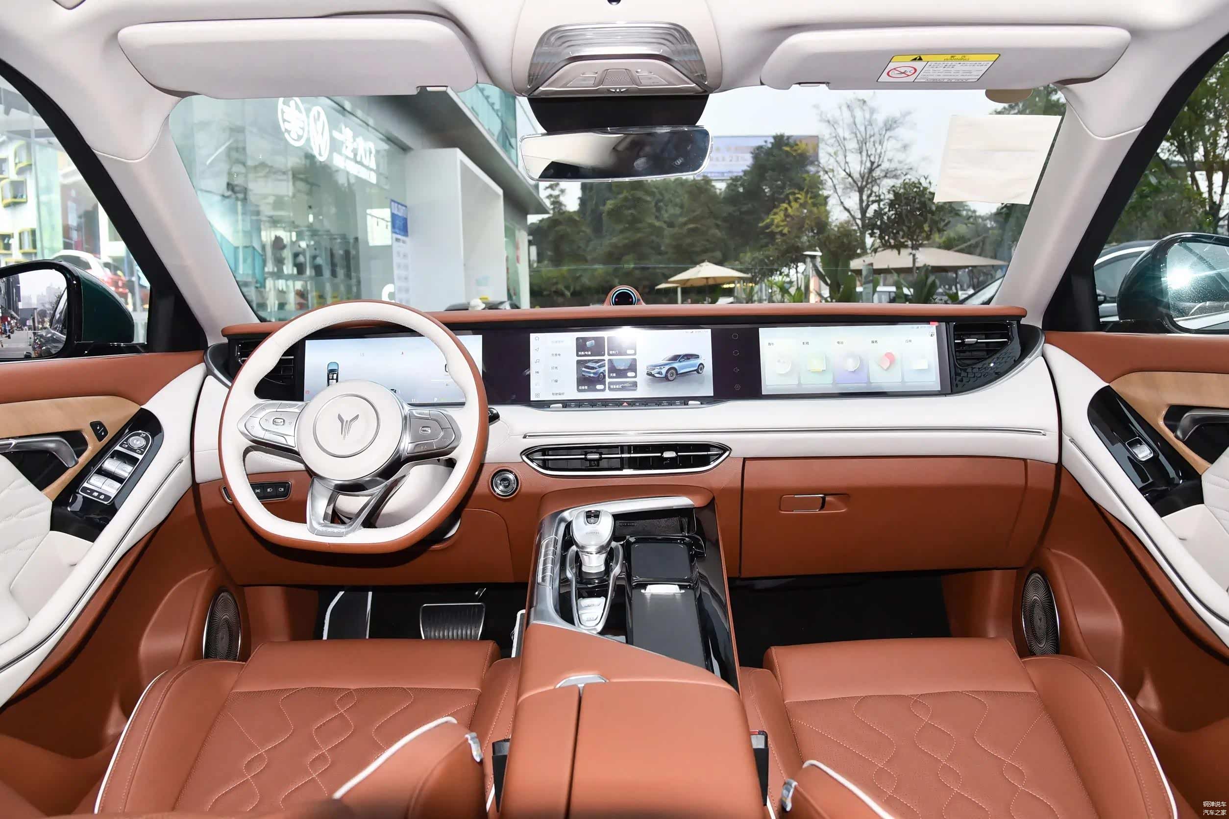 中控台上面配有三块12.3英寸屏幕,棕色和白色相间的内饰,显得温馨又豪华。对于跑长途来说,坐在副驾驶可以观看影视剧和K歌,10个丹拿品牌扬声器,音质效果挺好。