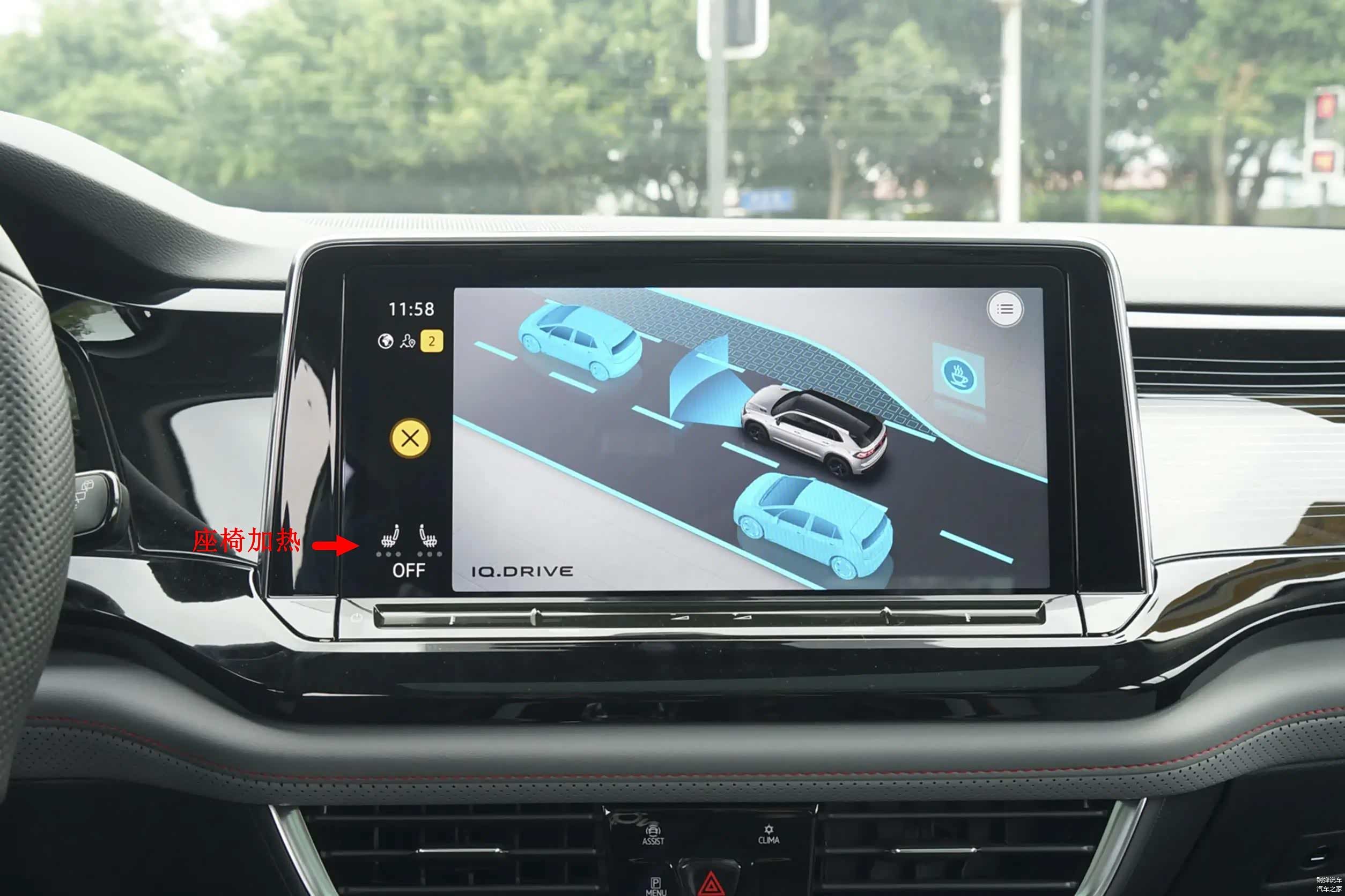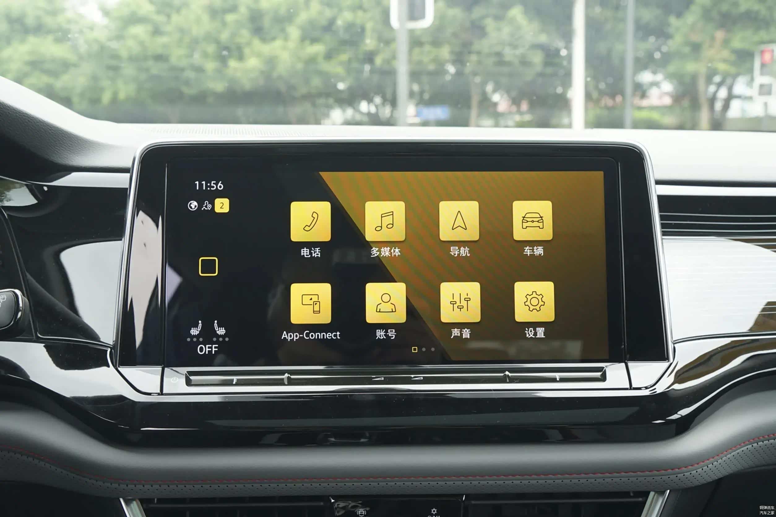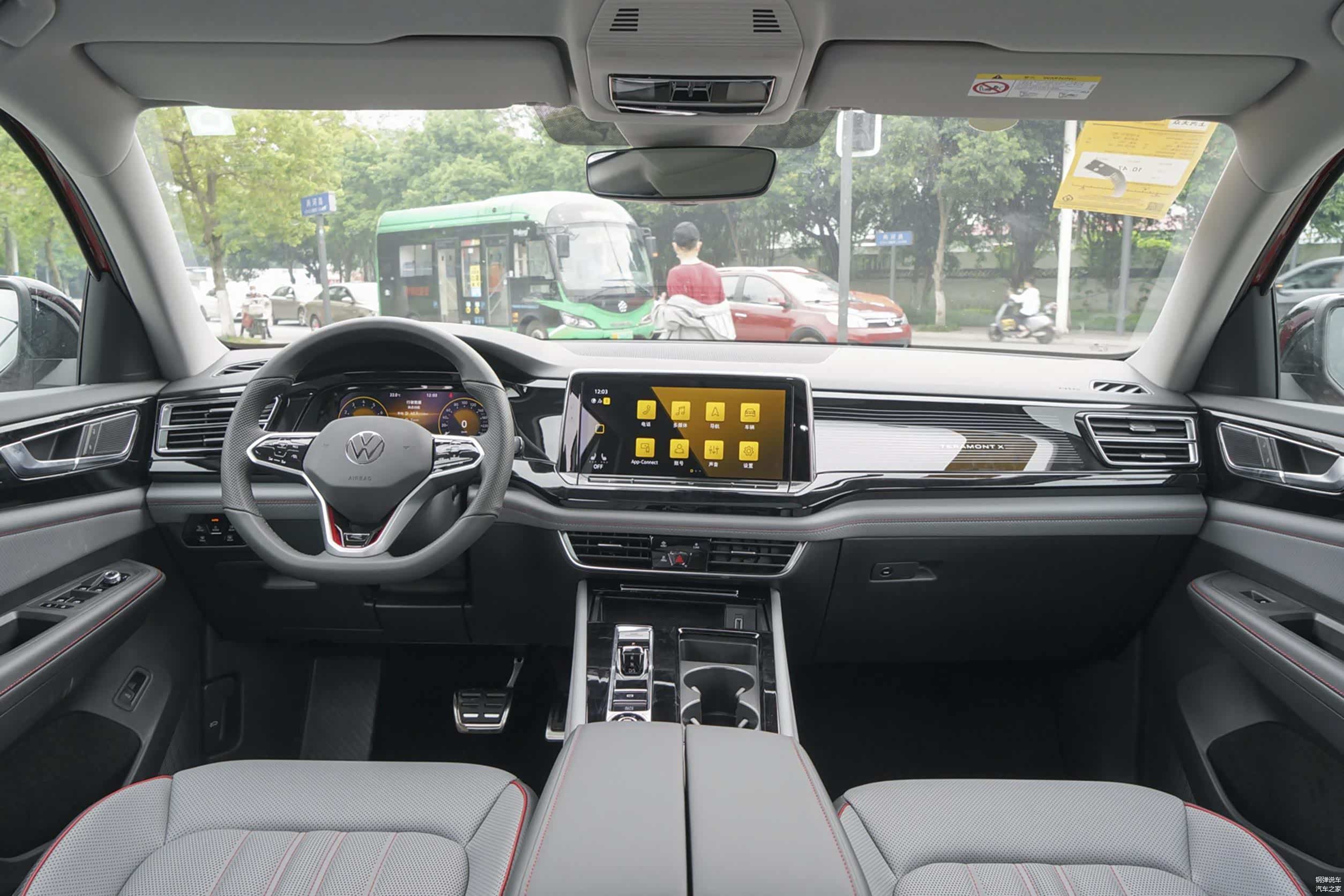 进入到前排,中控上面的功能区域布局整齐,做工用料精细严谨。12英寸中控屏采用横置设计,用手指触控菜单,反应灵敏,不卡顿。