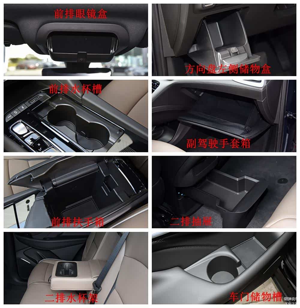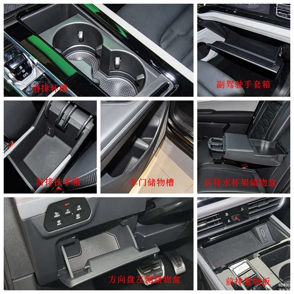 这款车是七座布局,车内储物空间容积不算大,但数量够多,有前排眼镜盒、扶手箱、手套箱、水杯架、车门储物槽,第二排出风口底部抽屉、第三排水杯架等等,满足日常所需没有问题。