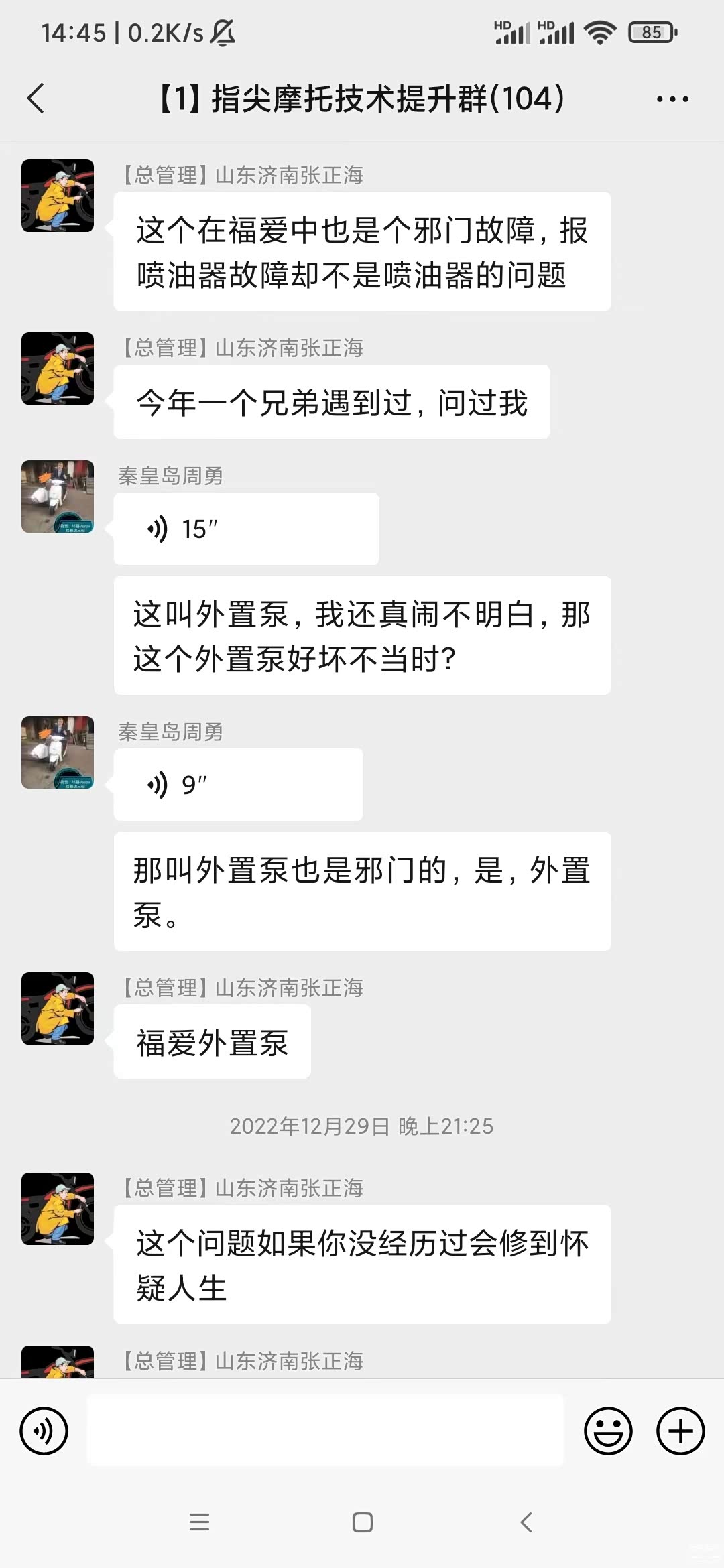 指尖摩托维修群最近非常热闹,修理工兄弟们现在接到的电喷摩托车维修越来越多了,已经在日常维修中占了相当大的比例。虽然都是老师傅了,但维修电喷车毕竟比维修化油器车还是更有难度,维修中遇到的困难也越来越多,所以大家在群里的讨论也更积极,听课也更认真。